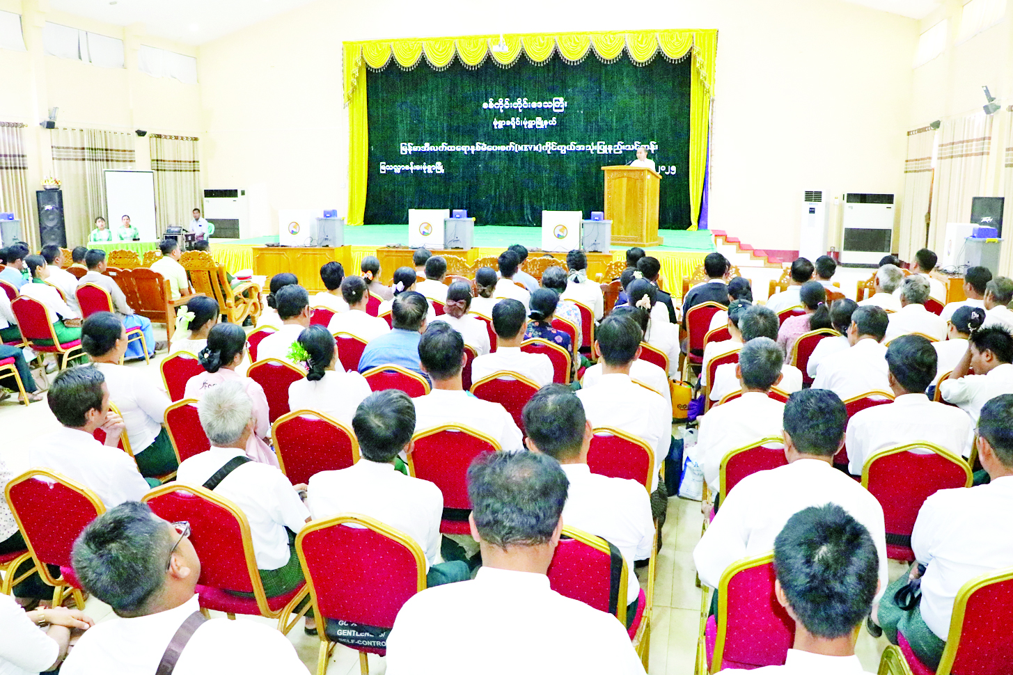 မြန်မာအီလက်ထရောနစ်မဲပေးစက် (MEVM) ကိုင်တွယ်အသုံးပြုခြင်းဆိုင်ရာ ဆင့်ပွားသင်တန်းဖွင့်ပွဲအခမ်းအနားကို ယနေ့နံနက်ပိုင်းတွင် စစ်ကိုင်းတိုင်းဒေသကြီး မုံရွာခရိုင် စီမံအုပ်ချုပ်ရေးအဖွဲ့ရုံး မြသလ္လာခန်းမ၌ ကျင်းပသည်။