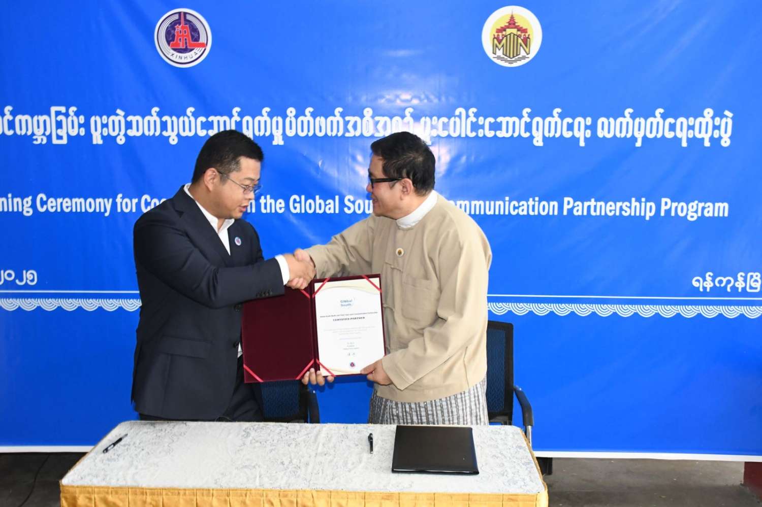 မြန်မာ့ပုံရိပ်ဖော်ညွှန်းရေးအဖွဲ့ (Myanmar Narrative Think Tank) နှင့် ဆင်ဟွာသတင်းဌာနတို့၏ တောင်ကမ္ဘာခြမ်း ပူးတွဲဆက်သွယ်ဆောင်ရွက်မှု မိတ်ဖက်အစီအစဉ် ပူးပေါင်းဆောင်ရွက်ရေး လက်မှတ်ရေးထိုးပွဲ ကျင်းပ