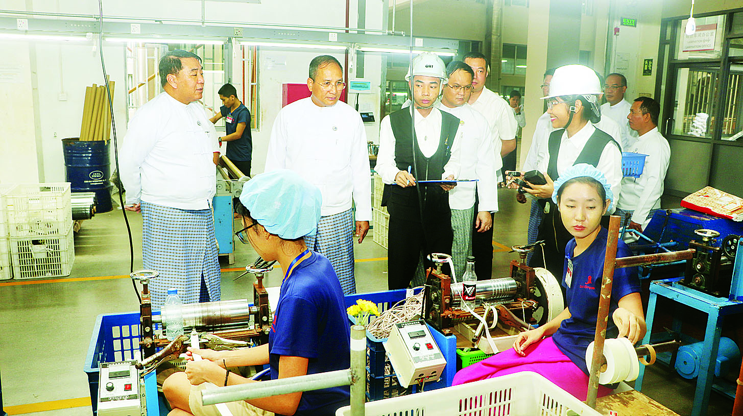 ဆက်လက်၍ လှိုင်သာယာ (အနောက်ပိုင်း) မြို့နယ် ရွှေလင်ပန်းစက်မှုဇုန်ရှိ Golden Emperor (Myanmar) Co., Ltd. ဖိနပ်ချုပ်စက်ရုံ(ဝဲပုံ)နှင့် Sheng Jie (Myanmar) Co., Ltd. အထည်ချုပ်စက်ရုံတို့ကို သွားရောက်ကြည့်ရှုစစ်ဆေး၍ စက်ရုံများတွင် ဖွဲ့စည်းထားသည့် အလုပ်သမားရေးရာလုပ်ငန်း ညှိနှိုင်းရေးကော်မတီ (WCC)၊ လုပ်ငန်းခွင်ဘေးအန္တရာယ်ကင်းရှင်းရေးနှင့် ကျန်းမာရေးကော်မတီများအား အလုပ်သမားရေးရာဥပဒေများနှင့်အညီ လိုက်နာဆောင်ရွက်ရန် မှာကြားခဲ့ကြောင်း သတင်းရရှိသည်။