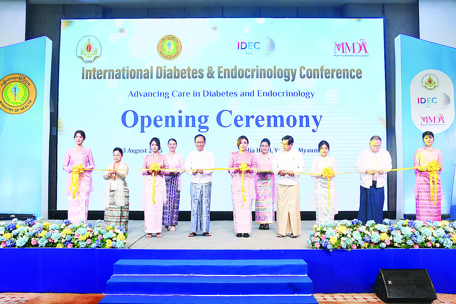 ဒုတိယအကြိမ်မြောက် ဆီးချိုသွေးချိုနှင့် ဟော်မုန်းရောဂါပညာအဖွဲ့ နိုင်ငံတကာဆေးပညာညီလာခံ ဖွင့်ပွဲအခမ်းအနားကို ယနေ့နံနက်ပိုင်းတွင် Melia Hotel ရန်ကုန်၌ကျင်းပရာ ကျန်းမာရေးဝန်ကြီးဌာန ပြည်ထောင်စုဝန်ကြီး ပါမောက္ခဒေါက်တာ သက်ခိုင်ဝင်း၊ ရန်ကုန်တိုင်းဒေသကြီးဝန်ကြီးချုပ် ဦးစိုးသိန်းနှင့် တိုင်းဒေသကြီးဝန်ကြီးများ၊ ကျန်းမာရေးဝန်ကြီးဌာနနှင့် ကာကွယ်ရေးဝန်ကြီးဌာနမှ တာဝန်ရှိသူများ၊ ဆေးတက္ကသိုလ်များမှ ပါမောက္ခချုပ်များ၊ ပါမောက္ခ/ဌာနမှူးများ၊ မြန်မာနိုင်ငံဆေးကောင်စီ၊ မြန်မာနိုင်ငံဆေးပညာရှင်အဖွဲ့၊ မြန်မာနိုင်ငံဆရာဝန်အသင်းနှင့် နှီးနွှယ်ပညာရှင်အသင်းများမှ ဥက္ကဋ္ဌများ၊ အငြိမ်းစားဆေးပညာရှင်ကြီးများ၊ ပြည်တွင်း/ပြည်ပမှ အထွေထွေရောဂါဆေးပညာနှင့် ဆီးချိုသွေးချိုနှင့်ဟော်မုန်းရောဂါ ပါမောက္ခ/အထူးကုဆရာဝန်ကြီးများ တက်ရောက်သည်။