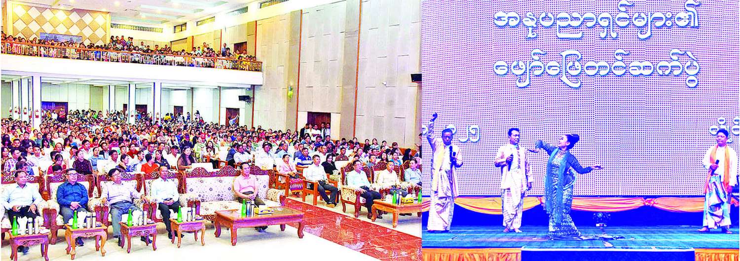 ထို့နောက် အနုပညာရှင်များက အ.ထ.က (၁) မှ ဆရာ ဆရာမများ၊ ကျောင်းသား ကျောင်းသူများနှင့် စုပေါင်း၍ “ရောင်ပေစူး” တေးသီချင်းဖြင့်လည်းကောင်း၊ အ.ထ.က (၁) မှ ကျောင်းသား ကျောင်းသူများက “ထာဝရသစ္စာ” တေးသီချင်းဖြင့်လည်းကောင်း၊ အ.ထ.က ခွဲ (လောဓမ္မ) မှ ကျောင်းသား ကျောင်းသူများက “လှမ်းလာခဲ့ပါကယားမြေ” တေးသီချင်းဖြင့်လည်းကောင်း၊ အ.ထ.က (၁) နှင့် (၂) တို့မှ ကျောင်းသား ကျောင်းသူများ စုပေါင်း၍ “ဇာတိမာန်” တေးသီချင်းဖြင့် လည်းကောင်း သီဆိုဖျော်ဖြေတင်ဆက်ခဲ့ကြသည်။