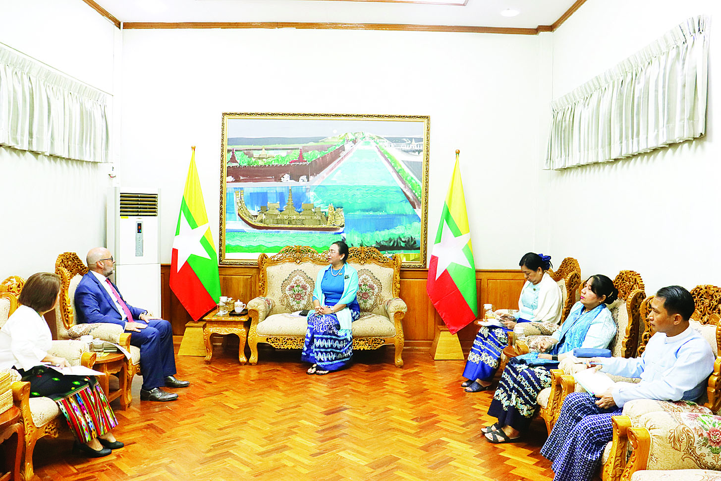 တွေ့ဆုံစဉ် မြန်မာနိုင်ငံတွင် UNFPA မှ ဆောင်ရွက်လျက်ရှိသော လုပ်ငန်းစဉ် (Work Plan) ဆက်လက်သက်တမ်းတိုးမြှင့်ဆောင်ရွက်မည့် အစီအစဉ်၊ သက်ဆိုင်ရာဝန်ကြီးဌာနများနှင့် UNFPA တို့အကြား သဘောတူညှိနှိုင်းထားသည့် အကောင်အထည်ဖော်ဆောင်ရွက်မှု လုပ်ငန်းစဉ်များနှင့် ဆက်လက်ဆောင်ရွက်မည့် အစီအစဉ်များ၊ နိုင်ငံတကာအကူအညီ အထောက်အပံ့များ အကျိုးရှိထိရောက်စေရေး စီမံဆောင်ရွက်မှုများကို အလေးထားဆောင်ရွက်ရန် အမြင်ချင်းဖလှယ်ဆွေးနွေးကြသည်။