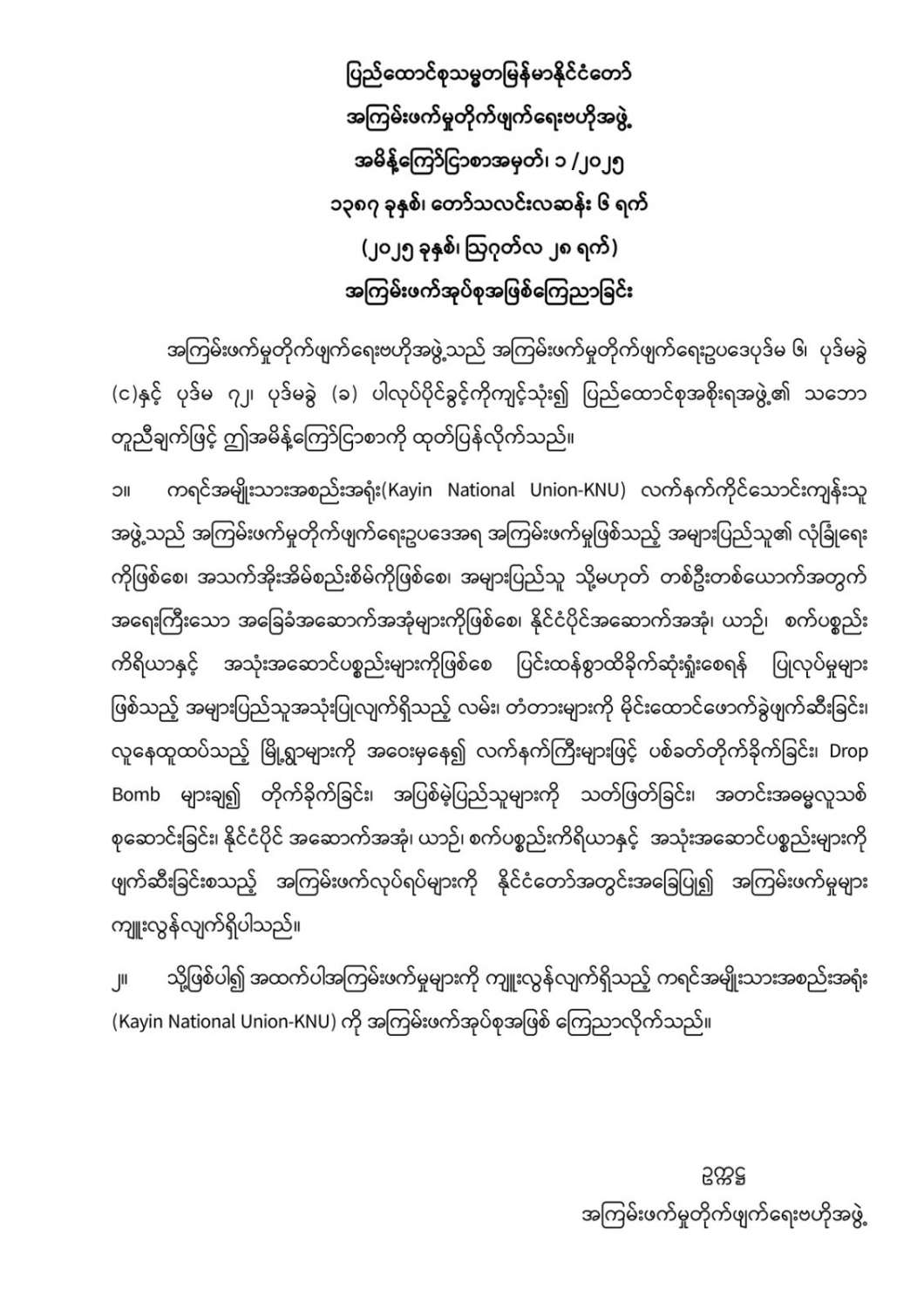 နိုင်ငံတော်အစိုးရ၏ ကြေညာချက်များ