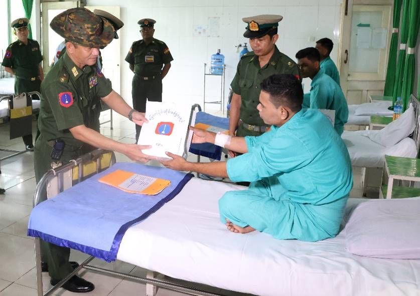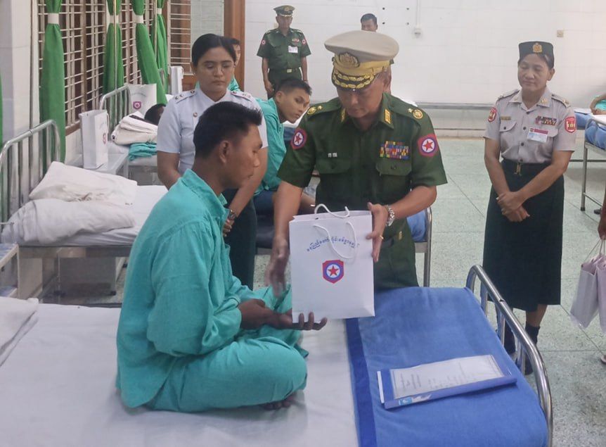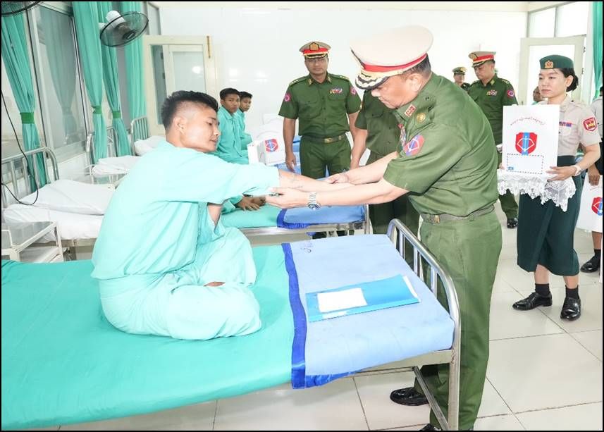 နေပြည်တော်ကောင်စီနယ်မြေ၊ ဇေယျာသီရိမြို့နယ်ရှိ တပ်မတော်ဆေးရုံကြီး (ခုတင်-၁၀၀၀)၊ ကချင်ပြည်နယ်၊ မြစ်ကြီးနားမြို့ရှိ နယ်မြေခံတပ်မတော်ဆေးရုံ၊ ရန်ကုန်တိုင်းဒေသကြီး၊ မင်္ဂလာဒုံမြို့နယ်ရှိ တပ်မတော်အရိုးရောဂါ အထူးကုဆေးရုံကြီး (ခုတင်-၅၀၀)နှင့် တပ်မတော်ဆေးရုံကြီး (ခုတင်-၁၀၀၀)၊ စစ်ကိုင်းတိုင်းဒေသကြီး၊ မုံရွာမြို့ရှိ တပ်မတော်ဆေးရုံနှင့် ပဲခူးတိုင်းဒေသကြီး၊ ပြည်မြို့ရှိ တပ်မတော်ဆေးရုံတို့၌ တက်ရောက်ဆေးကုသမှုခံယူလျက်ရှိသော အရာရှိ၊ စစ်သည်၊ မိသားစုဝင်၊ စစ်မှုထမ်းဟောင်းအဖွဲ့ဝင်များ၊ မြန်မာနိုင်ငံရဲတပ်ဖွဲ့ဝင်များ၊ ပြည်သူ့စစ် (ဌာနေ) တပ်ဖွဲ့ဝင်များနှင့် ဒေသခံပြည်သူများအား ယနေ့တွင် သက်ဆိုင်ရာတိုင်းစစ်ဌာနချုပ်များမှ တိုင်းမှူးများနှင့် တာဝန်ရှိသူများက သွားရောက်ကြည့်ရှု၍ တစ်ဦးချင်း၏ရောဂါဖြစ်ပွားမှု၊ ဆေးဝါးကုသပေးထားမှုနှင့် ကျန်းမာရေးတိုးတက် ကောင်းမွန်မှုအခြေအနေများကို မေးမြန်းအားပေးစကားပြောကြားပြီး အာဟာရဖြည့်စားသောက်ဖွယ်ရာများ ပေးအပ်သည်။