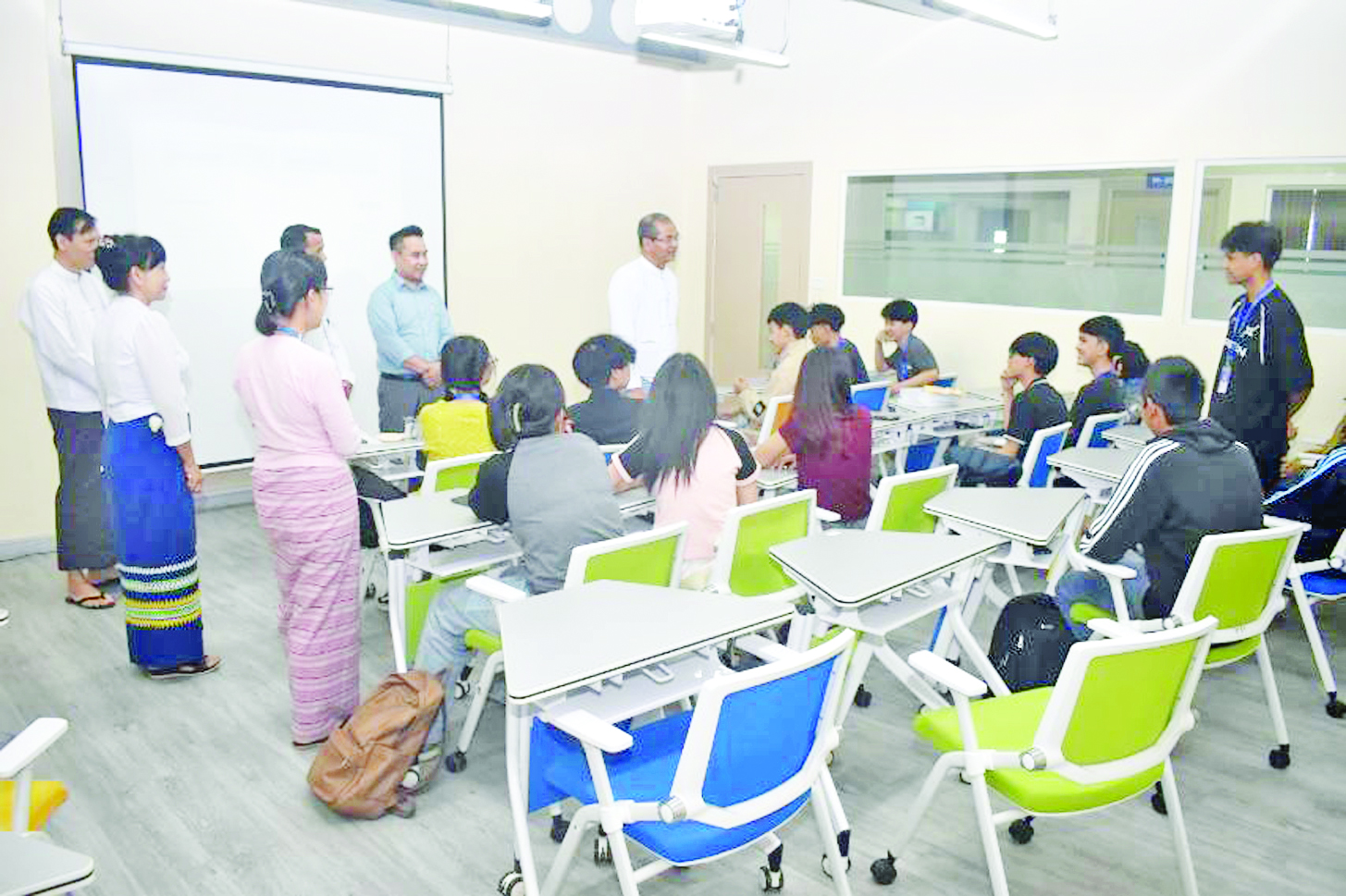 အလုပ်သမား ဝန်ကြီးဌာန ဒုတိယဝန်ကြီး ဦးဝင်းရှိန်သည် ယနေ့နံနက်ပိုင်းတွင် ရန်ကုန်တိုင်းဒေသကြီးရှိ အလုပ်သမားရေးရာ တာဝန်ရှိသူများနှင့်အတူ ရန်ကုန်တိုင်းဒေသကြီး စမ်းချောင်းမြို့နယ်ရှိ Knowledge Manage-ment and Dedication (KMD) Training Center တွင် IT ပိုင်း ဆိုင်ရာ နည်းပညာသင်တန်းများ ဖွင့်လှစ်သင်ကြားနေမှုကို ကြည့်ရှုအားပေးသည်။