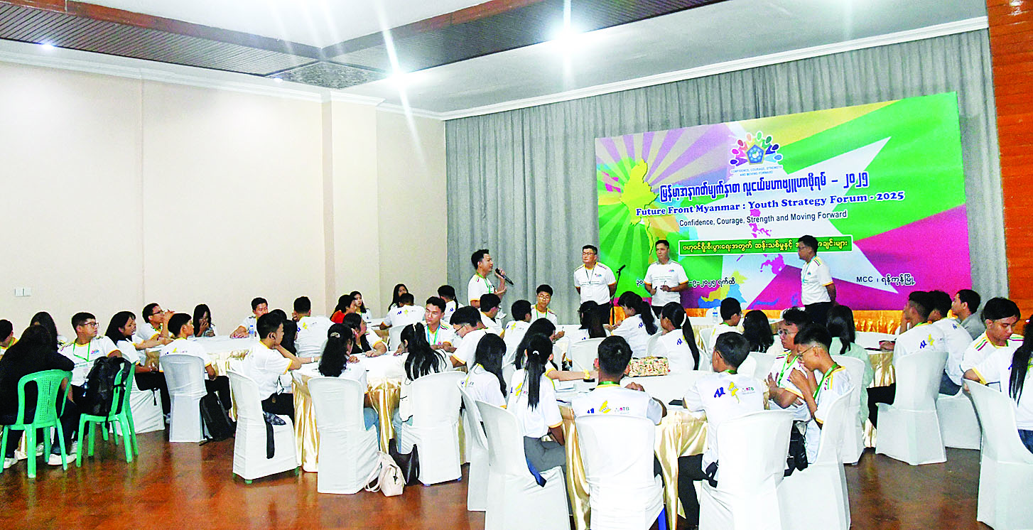 “လူငယ်စွမ်းအားပြည့်အင်အားဖြင့် ရှေ့သို့လှမ်းချီမြန်မာပြည်” ဆောင်ပုဒ်ဖြင့် ကျင်းပသည့် မြန်မာ့အနာဂတ် မျက်နှာစာလူငယ်မဟာဗျူဟာဖိုရမ်-၂၀၂၅ ဒုတိယနေ့ကို ယနေ့တွင် ရန်ကုန်မြို့ရှိ မြန်မာကွန်ဗင်းရှင်းစင်တာ (MCC) ၌ ဆက်လက်ကျင်းပသည်။