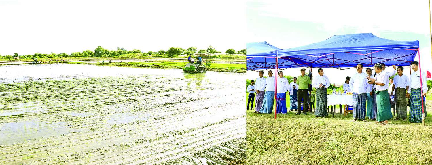 လူစီးကောက်စိုက်စက်ဖြင့် မိုးစပါးစိုက်ပျိုးသရုပ်ပြပွဲကို ယနေ့နံနက်ပိုင်းတွင် နေပြည်တော်ကောင်စီနယ်မြေ လယ်ဝေးမြို့နယ် ရုံးတောကျေးရွာရှိ ရွှေဝါထွန်း(၂) စိုက်ပျိုးထုတ်လုပ်ရေးသမဝါယမအသင်းလီမိတက်၏ အသင်းပိုင်လယ်မြေဧက ၂၀ ၌ကျင်းပရာ သမဝါယမနှင့်ကျေးလက်ဖွံ့ဖြိုးရေးဝန်ကြီးဌာန ပြည်ထောင်စုဝန်ကြီး ဦးလှမိုး၊ အမြဲတမ်းအတွင်းဝန်၊ ဌာနဆိုင်ရာများ၊ မြန်မာနိုင်ငံမြေဩဇာ၊ မျိုးစေ့နှင့် စိုက်ပျိုးရေးဆေးလုပ်ငန်းရှင်များအသင်းနှင့် မြန်မာနိုင်ငံဆန်စပါးအသင်းချုပ်တို့မှ ကိုယ်စားလှယ်များ၊ မြန်မာနိုင်ငံတော်ဗဟိုဘဏ်၊ မြန်မာ့စီးပွားရေးဘဏ်နှင့် ဦးစီးဌာနများမှ ဦးဆောင်ကော်မတီအဖွဲ့ဝင်များနှင့် တာဝန်ရှိသူများ တက်ရောက်ကြသည်။