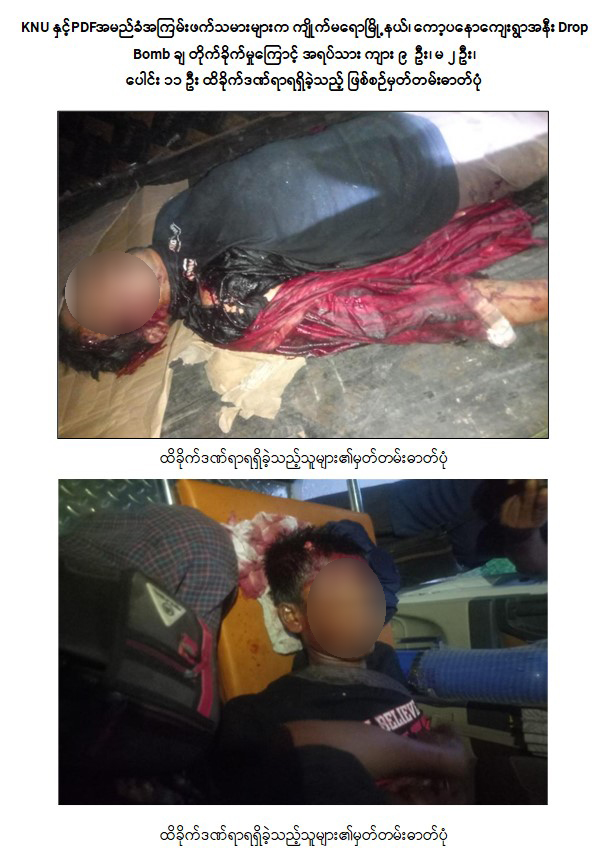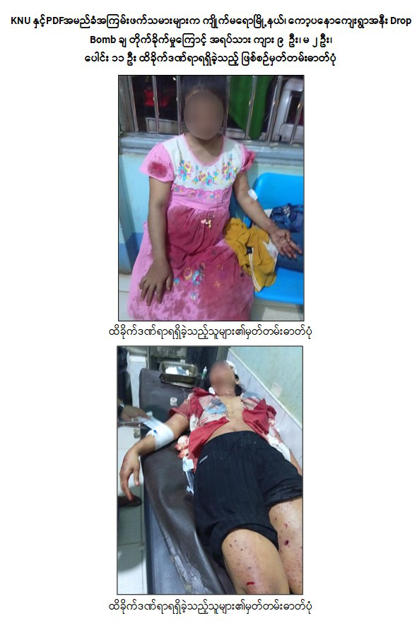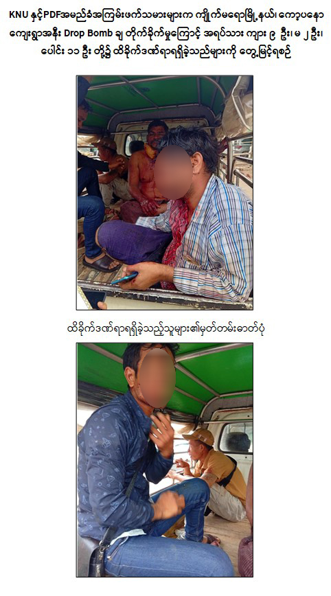 KNU နှင့် PDF အမည်ခံအကြမ်းဖက်သမားများက ကျိုက်မရောမြို့နယ်၊ ကော့ပနောကျေးရွာအနီး Drop Bomb ချ တိုက်ခိုက်ခဲ့သဖြင့် အပြစ်မဲ့အရပ်သားပြည်သူ ၁၁ ဦး ထိခိုက်ဒဏ်ရာရရှိ