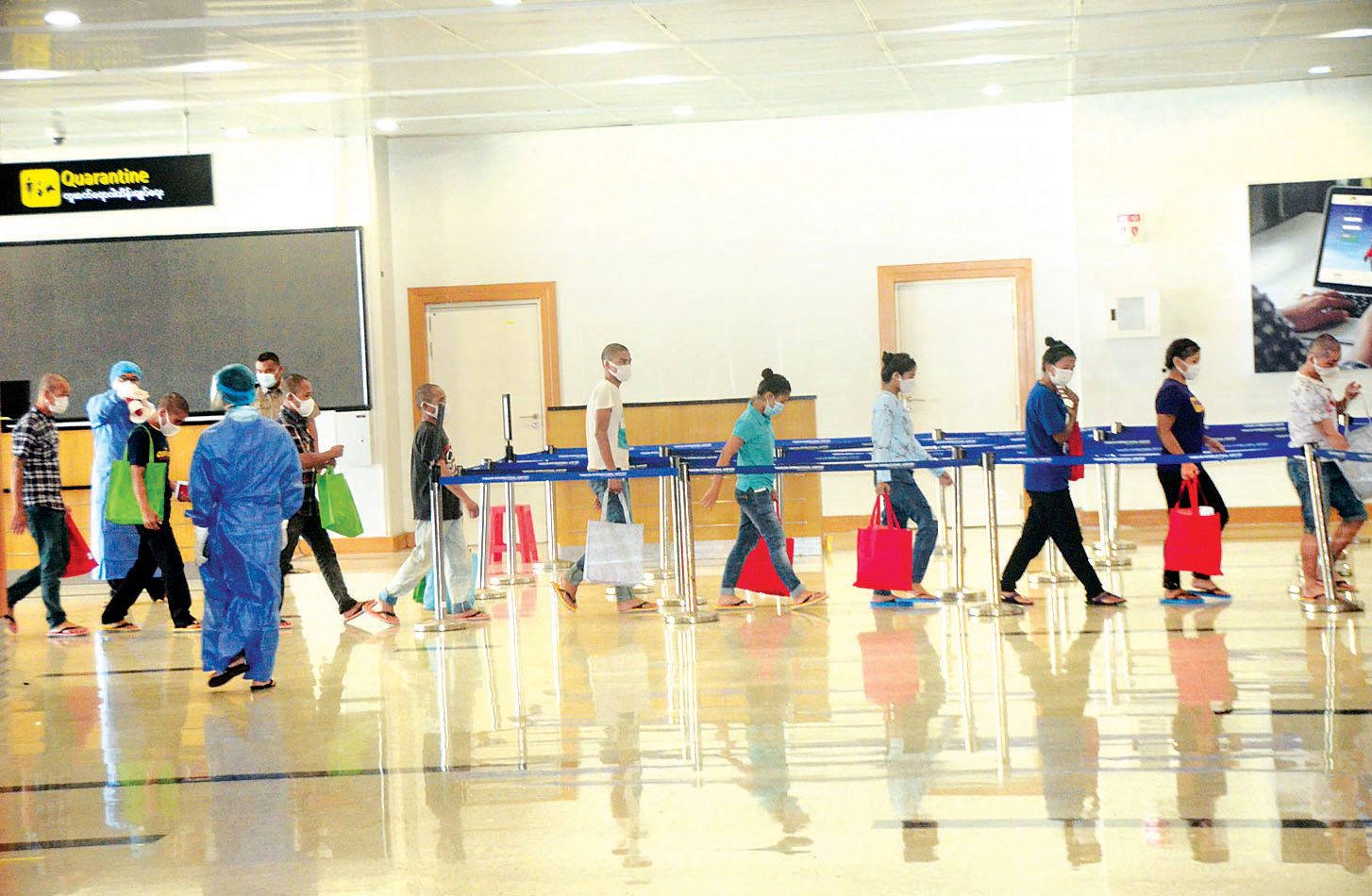 ဖော်ပြပါ ထိန်းသိမ်းခံ မြန်မာ နိုင်ငံသားများ လိုက်ပါစီးနင်းလာသည့် စင်းလုံးငှား အထူးလေယာဉ် ဆိုက်ရောက်ပျံသန်းရေးဆိုင်ရာ ကိစ္စ ရပ်များအား ပို့ဆောင်ရေးနှင့် ဆက်သွယ်ရေးဝန်ကြီးဌာနမှ လည်း ကောင်း၊ ၎င်းတို့ ရန်ကုန်အပြည်ပြည် ဆိုင်ရာလေဆိပ်သို့ ရောက်ရှိချိန်တွင် လူဝင်မှုကြီးကြပ်ရေးဆိုင်ရာကိစ္စရပ် များအား အလုပ်သမား၊ လူဝင်မှု ကြီးကြပ်ရေးနှင့် ပြည်သူ့အင်အား ဝန်ကြီးဌာနမှ လည်းကောင်း၊ ကျန်းမာရေးစိစစ်ရေးနှင့် သီးသန့် စီစဉ်ပေးသည့် နေရာများ၌ အသွားအလာကန့်သတ်မှု (၇)ရက်နှင့် နေအိမ် တွင် အသွားအလာကန့်သတ်မှု (၇)ရက် နေထိုင်စေရေးတို့ကို ကျန်းမာရေးနှင့် အားကစားဝန်ကြီးဌာနနှင့် ရန်ကုန် တိုင်းဒေသကြီး အစိုးရအဖွဲ့တို့မှ လည်းကောင်း၊ သက်ဆိုင်ရာအခန်း ကဏ္ဍအလိုက် အသီးသီးတာဝန်ယူ ဆောင်ရွက်ပေးခဲ့သည်။
