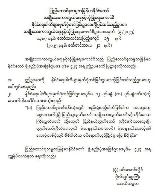 ဝန်ကြီးဌာန ကြေညာချက်များ