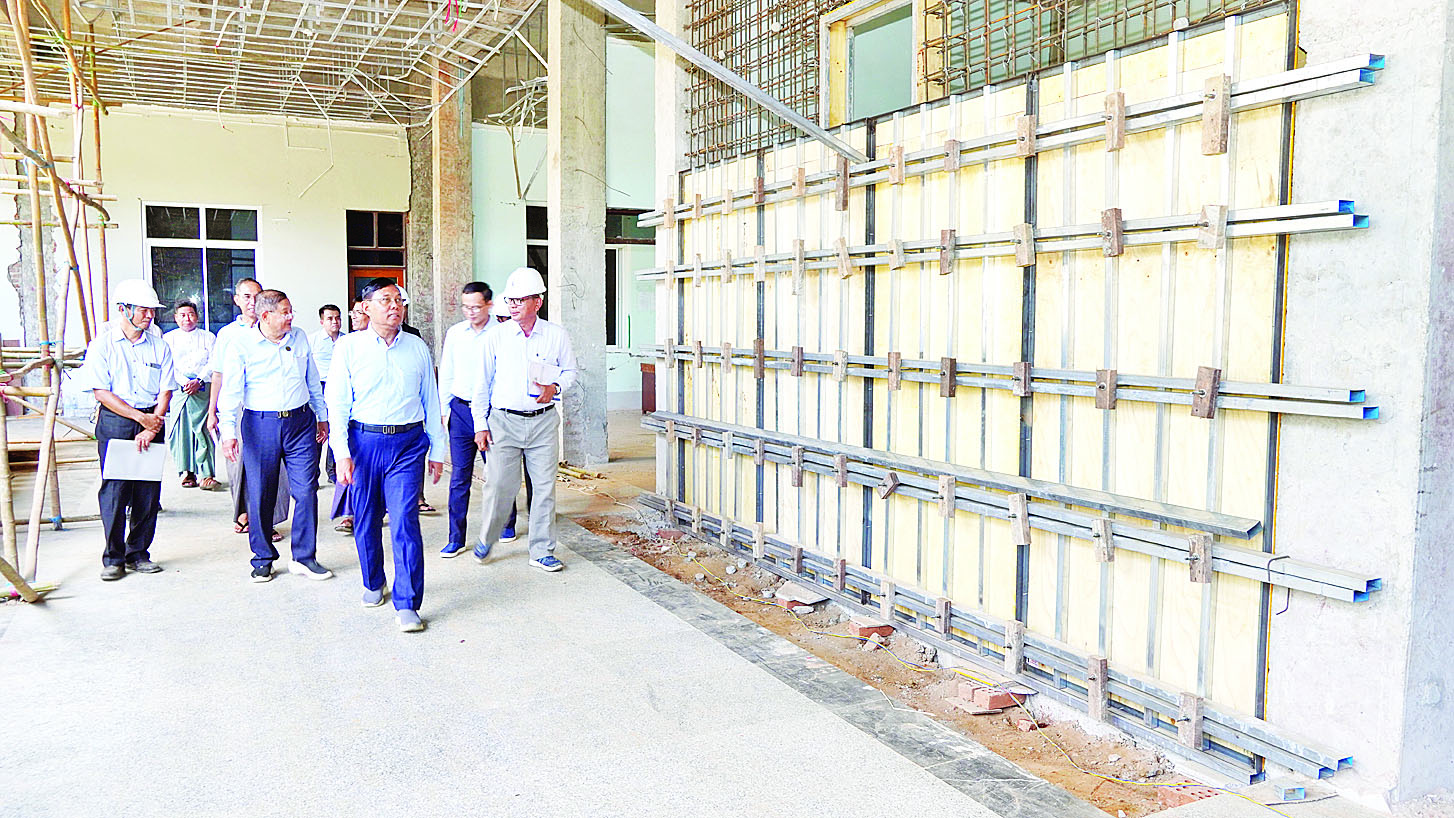ဦးစွာ အဆောက်အအုံများ ပြန်လည်ပြုပြင်အသုံးပြုရေးနှင့် အသစ်တည်ဆောက်ရေးကြီးကြပ်မှု ကော်မတီဥက္ကဋ္ဌသည် ငလျင်ဒဏ်ကြောင့် ပျက်စီးသွားသော ဝန်ထမ်းအိမ်ရာများအတွက် လေးခန်းတွဲလေးထပ်အဆောက်အအုံများ အသစ်ပြန်လည်တည်ဆောက်နေသည့် လုပ်ငန်းခွင်ရှင်းလင်းဆောင်သို့ ရောက်ရှိရာ ဌာနဆိုင်ရာတာဝန်ရှိသူများနှင့် ကုမ္ပဏီအသင်းအဖွဲ့တို့မှ တာဝန်ရှိသူများက အိမ်ရာစီမံကိန်းများလျာထားချက်၊ လုပ်ငန်းများဆောင်ရွက်ပြီးစီးမှုနှင့် ဆက်လက်ဆောင်ရွက်မည့် လုပ်ငန်းအစီအစဉ်များကို သက်ဆိုင်ရာကဏ္ဍအလိုက် ရှင်းလင်းတင်ပြကာ ပြည်ထောင်စုဝန်ကြီးက ဝန်ထမ်းအိမ်ရာများ အသစ်ပြန်လည်တည်ဆောက်ရာတွင် မြေစမ်းသပ်ခြင်းအား စနစ်တကျဆောင်ရွက်ရန်၊ အကွက်ချပုံစံကိုက်ညီမှန်ကန်စေရေး စစ်ဆေးဆောင်ရွက်ရန်၊ အဆောက်အအုံများ မဂ္ဂနီကျု ၈ အထိ ငလျင်ဒဏ်ခံနိုင်စေရေး စနစ်တကျတွက်ချက်တည်ဆောက်ရန် မှာကြားပြီး အသစ်တည်ဆောက်နေသည့် ဝန်ထမ်းအိမ်ရာများကို အသေးစိတ်လိုက်လံကြည့်ရှုစစ်ဆေး၍ လုပ်ငန်းလိုအပ်ချက်များ မှာကြားသည်။