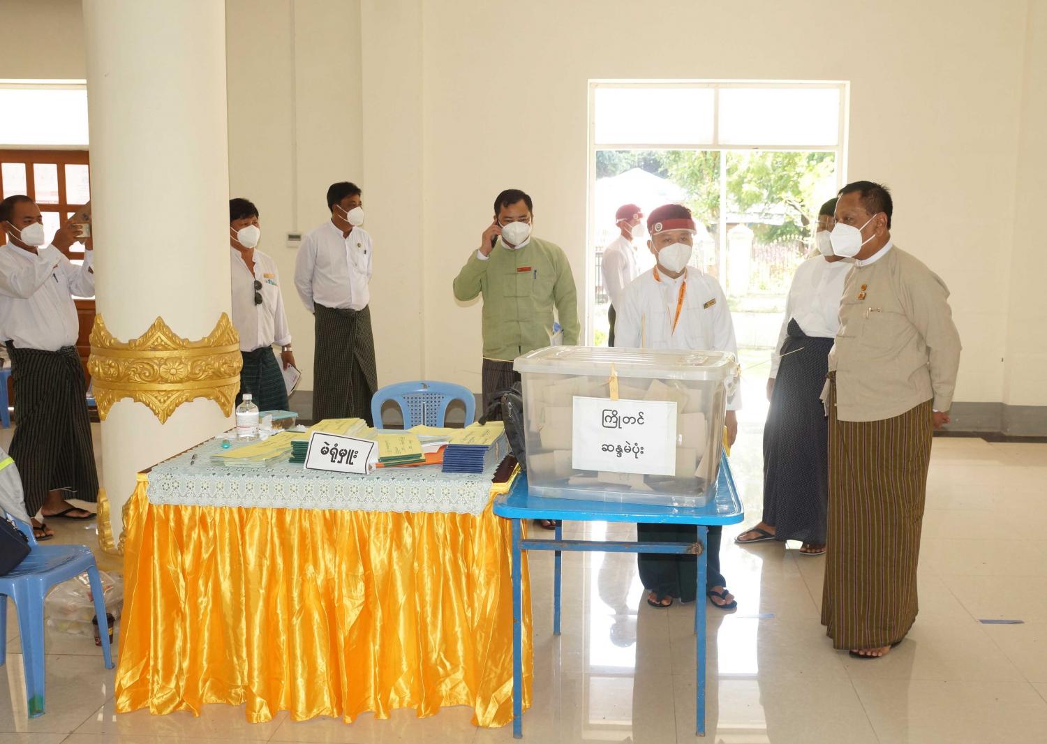 ထိုမှတဆင့် ဇေယျာသီရိမြို့နယ်၊ စိုက်ပျိုးရေးတက္ကသိုလ် အားကစားခန်းမတွင် ဖွင့်လှစ်ထားသည့် မဲရုံသို့လည်းကောင်း၊ ပျဉ်းမနားမြို့၊ ရွာကောက်ရပ်ကွက်၊ မင်္ဂလာဗျူဟာခန်းမတွင် ဖွင့်လှစ်ထားသည့် မဲရုံသို့လည်းကောင်း၊ ယင်းနောက် ဒက္ခိဏသီရိမြို့နယ်၊ အမှတ်(၁၉) အခြေခံပညာအထက်တန်းကျောင်းနှင့် လယ်ဝေးမြို့နယ် အမှတ်(၂) အခြေခံပညာ အထက်တန်းကျောင်းတို့တွင် ဖွင့်လှစ်ထားသည့် မဲရုံများသို့သွားရောက်ပြီး မဲရုံများ၌ ဆန္ဒမဲပေးနေမှု အခြေအနေများနှင့် ဆန္ဒမဲပေးမည့် ပြည်သူများအား တာဝန်ရှိသူများက အယ်လ်ကိုဟော ၈၅ ရာခိုင်နှုန်းပါဝင်သည့် လက်သန့်ဆေးရည်ဖြင့် လက်များကိုသန့်စင်ပေးခြင်း၊ N-95 နှာခေါင်းစည်း များထုတ်ပေးခြင်း၊ ကိုယ်အပူချိန်တိုင်းတာခြင်း၊ မဲရုံအဝင်တွင် တစ်ဦးနှင့်တစ်ဦး (၆)ပေခွာ၍ တန်းစီကာ ဆန္ဒမဲပေးနေမှုအခြေအနေများကို ကျန်းမာရေးနှင့်အားကစားဝန်ကြီးဌာနမှ ထုတ်ပြန် ထားသည့် လမ်းညွှန်ချက်များနှင့်အညီ ဆောင်ရွက်နေမှုများအား လှည့်လည်ကြည့်ရှု စစ်ဆေးခဲ့ကြောင်း သိရသည်။