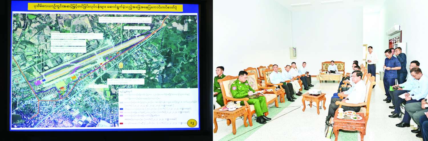 ၎င်းနောက် နိုင်ငံတော်လုံခြုံရေးနှင့် အေးချမ်းသာယာရေးကော်မရှင်ဥက္ကဋ္ဌနှင့် အဖွဲ့ဝင်များသည် ပုသိမ်လေဆိပ်သို့ရောက်ရှိကြပြီး အစည်းအဝေးခန်းမတွင် ပို့ဆောင် ရေးနှင့်ဆက်သွယ်ရေး ဝန်ကြီးဌာနပြည်ထောင်စုဝန်ကြီးက ပုသိမ်လေဆိပ်အဆင့်မြှင့် တင်ဆောင်ရွက်နေမှု အခြေအနေများနှင့်ပတ်သက်၍ ရှင်းလင်းတင်ပြသည်။