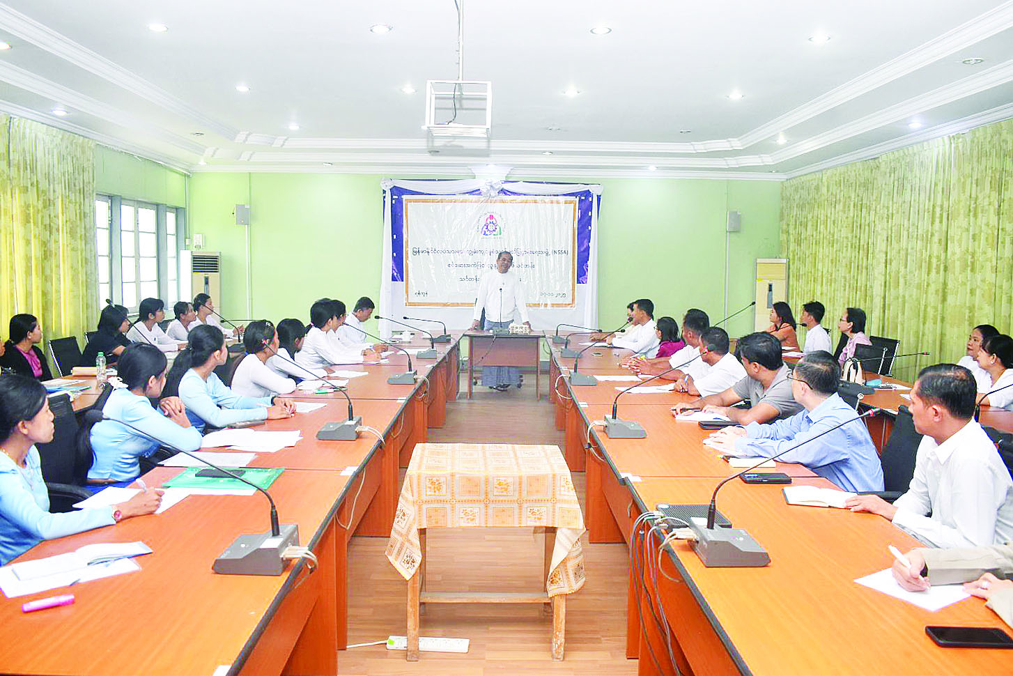 ဦးစွာ ဒုတိယဝန်ကြီးက NSSA ၏ ကျွမ်းကျင်မှုစစ်ဆေးအကဲဖြတ်ခြင်းလုပ်ငန်းစဉ်များတွင် ပါဝင်ဆောင်ရွက်မည့် စစ်ဆေးအကဲဖြတ်သူ(Assessor)များသည် Key Player များအဖြစ် ပါဝင်ဆောင်ရွက်ရသည့်အတွက် Assessor များ၏အခန်းကဏ္ဍ အလွန်အရေးပါကြောင်း၊ စစ်ဆေးအကဲဖြတ်ရေး လုပ်ငန်းစဉ်များ ဆောင်ရွက်ရာတွင် လက်တွေ့သုံးပစ္စည်းများကို ကြိုတင်စစ်ဆေးခြင်း၊ ဖြေဆိုသူလက်စွဲစာအုပ်ပါ စည်းမျဉ်းစည်းကမ်းများအား ရှင်းလင်းမျှဝေခြင်း၊ ဖြေဆိုရာတွင် ‌တွေ့ကြုံနိုင်သော အခက်အခဲများမျှဝေခြင်း၊ စာတွေ့/ လက်တွေ့နမူနာပုံစံများ မျှဝေခြင်း၊ ဖြေဆိုမည့်သူများ ဝင်ရောက်ဖြေဆိုရန် အရည်အချင်းပြည့်မီမှုရှိ/မရှိ အကဲဖြတ်ခြင်း၊ ကြိုတင် စိစစ်ခြင်းတို့အပြင် ဖြေဆိုသူများကို အနီးကပ်ကြီးကြပ် ဆောင်ရွက်ပေးရသည့်လုပ်ငန်းစဉ်များ ဆောင်ရွက်ပေးရကြောင်း၊ သင်တန်းတက်ရောက်လာသူ ဘာသာရပ်ဆိုင်ရာ ကျွမ်းကျင်သူများအနေဖြင့် သင်တန်းတွင် ပို့ချပေးသည့် အသိပညာ၊ ဗဟုသုတများကို လက်တွေ့လိုက်နာဆောင်ရွက် နိုင်ရေးသေချာမှတ်သားသွား စေလိုကြောင်း။