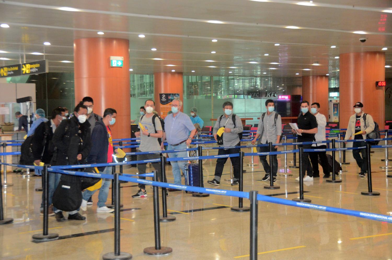 ၎င်းတို့ ရန်ကုန်အပြည်ပြည်ဆိုင်ရာ လေဆိပ်သို့ ရောက်ရှိချိန်တွင် လူဝင်မှုကြီးကြပ်ရေး၊ ကျန်းမာရေး စိစစ်ရေး၊ သီးသန့်စီစဉ်ပေးသည့် နေရာ / သတ်မှတ်ဟိုတယ်များ၌ အသွားအလာ ကန့်သတ်မှု (၇) ရက်နှင့် နေအိမ်တွင် အသွားအလာ ကန့်သတ်မှု(၇)ရက် နေထိုင်စေရေးတို့ကို အလုပ်သမား၊ လူဝင်မှုကြီးကြပ်ရေးနှင့် ပြည်သူ့အင်အားဝန်ကြီးဌာန၊ ကျန်းမာရေးနှင့် အားကစားဝန်ကြီးဌာနနှင့် ရန်ကုန်တိုင်းဒေသကြီး အစိုးရအဖွဲ့တို့မှ သက်ဆိုင်ရာ အခန်းကဏ္ဍ အလိုက် တာဝန်ယူ ဆောင်ရွက်ပေးခဲ့သည်။