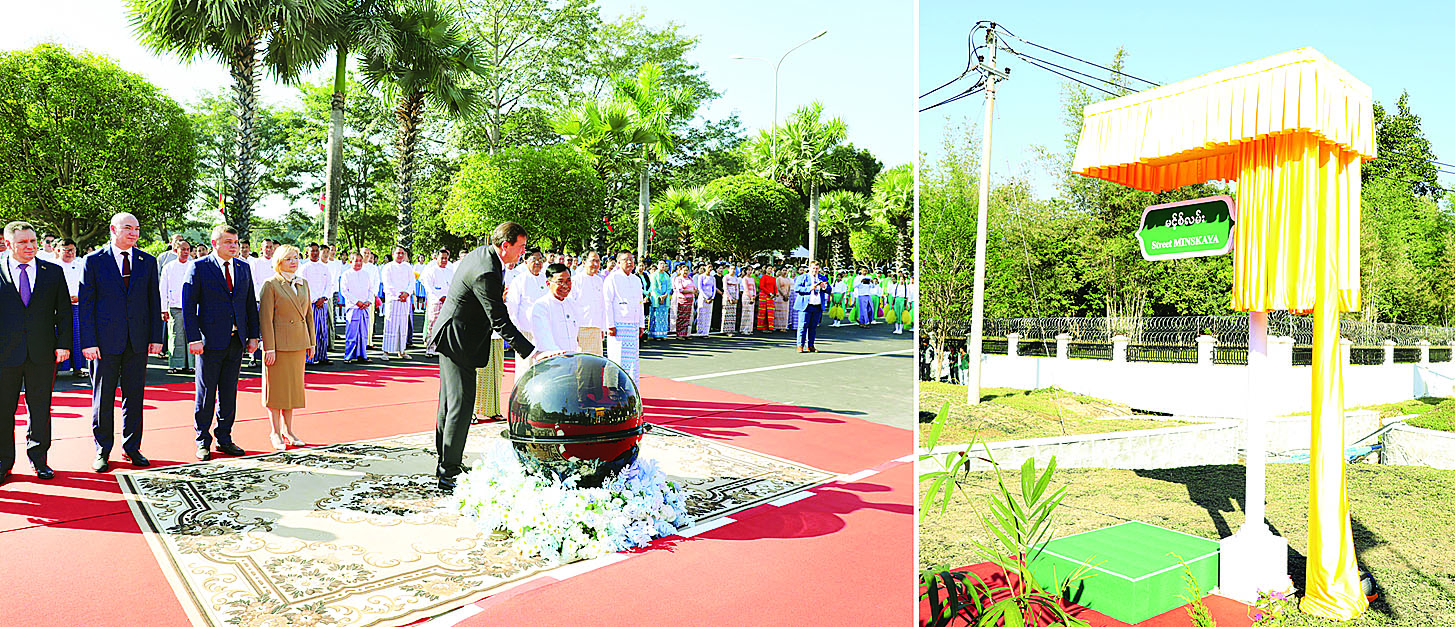 ပြည်ထောင်စုသမ္မတမြန်မာနိုင်ငံနှင့် ဘယ်လာရုစ်သမ္မတနိုင်ငံတို့အကြား နှစ်နိုင်ငံသံတမန်ချစ်ကြည်ရင်းနှီးမှုအဓွန့်ရှည်တည်တံ့စေရန်ရည်ရွယ်ပြီး ဘယ်လာရုစ်သမ္မတနိုင်ငံ၏ မြို့တော် Minsk မြို့၏အမည်အား ရာဇသင်္ဂဟလမ်းမကြီးနှင့် ဇမ္ဗူကျက်သရေလမ်းမကြီးကို ဆက်သွယ်ထားသောလမ်း၏အမည်အဖြစ် ဂုဏ်ပြုပေးအပ်ပွဲအခမ်းအနားကို ယနေ့နံနက်ပိုင်းတွင် ပြည်ထောင်စုနယ်မြေနေပြည်တော်ရှိ ရာဇသင်္ဂဟလမ်းနှင့် သီရိကျော်စွာလမ်းထောင့်(အဆင့်မြင့်ဈေးအနီး)၌ ကျင်းပသည်။