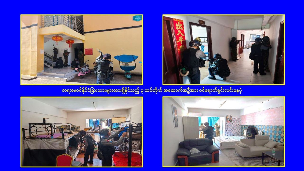 မြန်မာနိုင်ငံအစိုးရအနေဖြင့် အွန်လိုင်းလိမ်လည်မှုများနှင့် အွန်လိုင်းလောင်းကစားမှုများ အများဆုံးအခြေချလုပ်ကိုင်လျက်ရှိကြသည့် ရွှေကုက္ကိုလ်နယ်မြေနှင့် KK Park နယ်မြေများ၌ လုံခြုံရေးတပ်ဖွဲ့ဝင်များ၊ အုပ်ချုပ်ရေးအဖွဲ့အစည်းများနှင့် ဒေသတွင်းတာဝန်ရှိသူများအပါအဝင် အဖွဲ့စုံပါဝင်သည့် ပူးပေါင်းစစ်ဆင်ရေးအဖွဲ့များဖြင့် တရားမဝင်အဆောက်အအုံများအတွင်း ဝင်ရောက်ရှင်းလင်းခြင်း၊ အွန်လိုင်းလိမ်လည်လောင်းကစားမှုလုပ်ငန်းစဉ်များတွင်အသုံးပြုခဲ့သည့် သိမ်းဆည်းရမိပစ္စည်းများနှင့် တရားမဝင်အဆောက်အအုံများအား စနစ်တကျဖြိုချဖျက်ဆီးခြင်းများ ဆက်လက်ဆောင်ရွက်လျက်ရှိသည်။