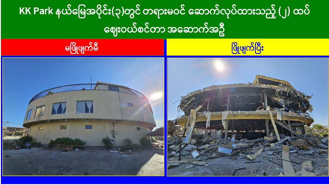 KK Park နယ်မြေအတွင်းရှိ အွန်လိုင်းလိမ်လည်မှုနှင့် လောင်းကစားမှုများကျူးလွန်ရာတွင် အသုံးပြုသည့် အဆောက်အအုံ ၂၇၆ လုံး ဖြိုချဖျက်ဆီးပြီးစီး၊ ရွှေကုက္ကိုလ်နယ်မြေအတွင်းရှိ တရားမဝင်အဆောက်အအုံ ၁၁၉ လုံး ချိပ်ပိတ်သိမ်းဆည်းပြီးဖြစ်