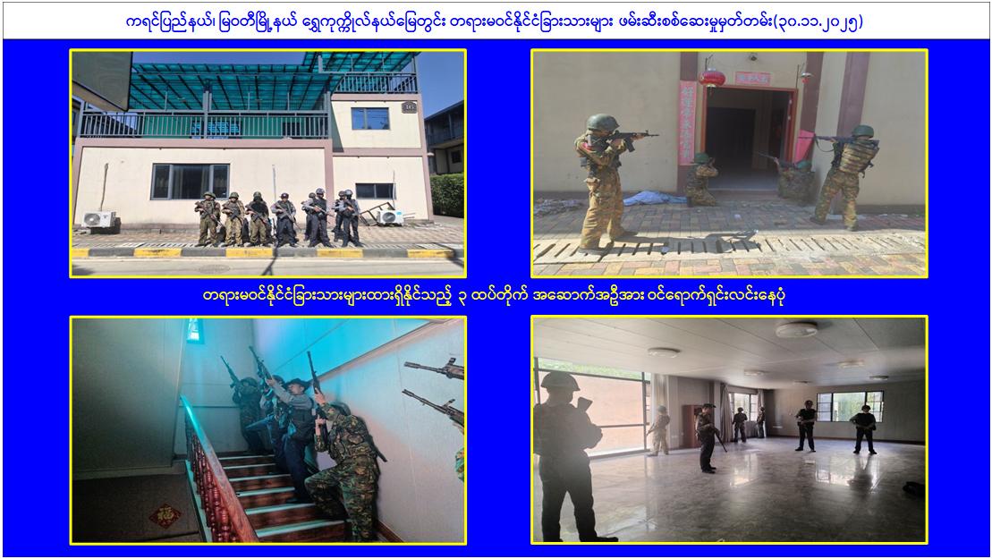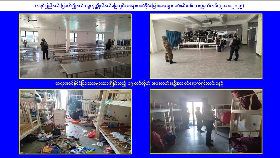 မြန်မာနိုင်ငံအစိုးရအနေဖြင့် အွန်လိုင်းလိမ်လည်မှုများနှင့် အွန်လိုင်းလောင်းကစားမှုများ အများဆုံးအခြေချလုပ်ကိုင်လျက်ရှိကြသည့် ရွှေကုက္ကိုလ်နယ်မြေနှင့် KK Park နယ်မြေများ၌ လုံခြုံရေးတပ်ဖွဲ့ဝင်များ၊ အုပ်ချုပ်ရေးအဖွဲ့အစည်းများနှင့် ဒေသတွင်းတာဝန်ရှိသူများအပါအဝင် အဖွဲ့စုံပါဝင်သည့် ပူးပေါင်းအဖွဲ့ဖြင့် တရားမဝင်အဆောက်အအုံများအတွင်း ဝင်ရောက်ရှင်းလင်းခြင်း၊ အွန်လိုင်းလိမ်လည်လောင်းကစားမှု လုပ်ငန်းစဉ်များတွင် အသုံးပြုခဲ့သည့် သိမ်းဆည်းရမိပစ္စည်းများနှင့် တရားမဝင်အဆောက်အအုံများအား စနစ်တကျဖြိုချဖျက်ဆီးခြင်းများ ဆက်လက်ဆောင်ရွက်လျက်ရှိသည်။