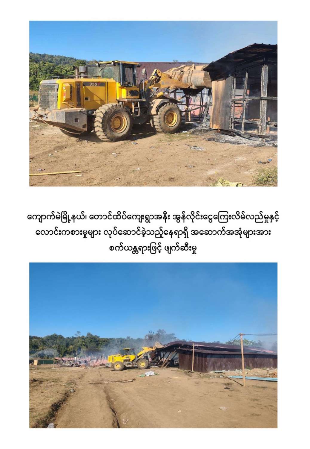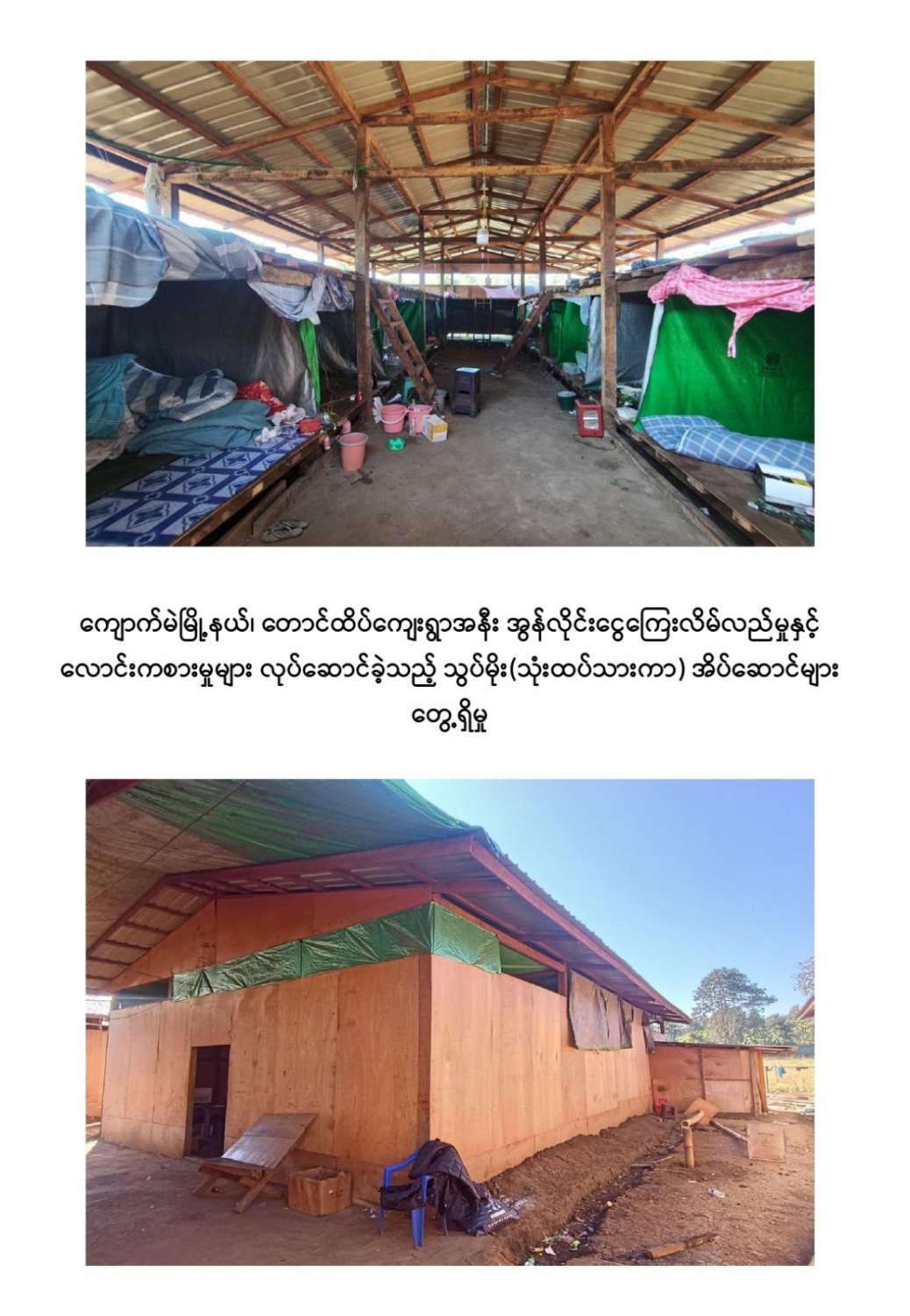 ကျောက်မဲမြို့နယ်အတွင်း နယ်မြေလုံခြုံရေးဆောင်ရွက်နေသည့် လုံခြုံရေးတပ်ဖွဲ့ဝင်များသည် နိုဝင်ဘာ ၃၀ ရက်တွင် ကျောက်မဲမြို့နယ်၊ တောင်ထိပ်ကျေးရွာ၏တောင်ဘက် ဒုဋ္ဌဝတီမြစ်အနီးသို့ရောက်ရှိစဉ် မသင်္ကာဖွယ်ရာအဆောက်အအုံများကိုတွေ့ရှိရသဖြင့် ဝင်ရောက်ရှာဖွေစစ်ဆေးခဲ့ရာ အွန်လိုင်းငွေကြေးလိမ်လည်မှုနှင့် လောင်းကစားမှုများ လုပ်ဆောင်နေသည့်နေရာဖြစ်ကြောင်းတွေ့ရှိရပြီး လုပ်ငန်းလုပ်ကိုင်နေကြသူများအား မတွေ့ရှိရဘဲ အလျား ၆၀ ပေ၊ အနံ ၃၀ ပေ ရှိ သွပ်မိုး ၃ ထပ်သားကာ အိပ်ဆောင် ၆ လုံး၊ အလျား ၆၀ ပေ၊ အနံ ၃၀ ပေ ရှိ သွပ်မိုး ၃ ထပ်သားကာ လုပ်ငန်းဆောင် ၅ လုံး၊ အလျား ၆၀ ပေ၊ အနံ ၃၀ ပေ ရှိ သွပ်မိုး ၃ ထပ်သားကာ အစားအစာသိုလှောင်ရုံ ၆ လုံး၊ အလျား ၆၀ ပေ၊ အနံ ၃၀ ပေ ရှိ ဆောက်လုပ်ဆဲလုပ်ငန်းဆောင် ၁ လုံး၊ အလျား ၆၀ ပေ၊ အနံ ၃၀ ပေ ရှိ ဆောက်လုပ်ဆဲအိပ်ဆောင် ၁ လုံး၊ အလျား ၈၀ ပေ၊ အနံ ၁၅ ပေ ရှိအထွေထွေသုံးအဆောင် ၁ လုံး၊ အလျား ၈၀ ပေ၊ အနံ ၁၀ ပေ ရှိ ၃ထပ်သားကာ တန်းလျားရှည်အိမ်သာ အိမ်သာ ၁ လုံး၊ အလျား ၃၀ ပေ၊ အနံ ၁၀ ပေ ရှိ အိပ်ခန်းတွဲ ၄ ခန်းတွဲအိပ်ဆောင် ၁ လုံး၊ အိပ်ခန်း ၄ ခန်းတွဲ(ရိက္ခာစတိုပါ) နှစ်ထပ်ဆောင် ၁ လုံး၊ မီးစက်အကြီး ၁ လုံး၊ ၁၅ ပေအမြင့် ကင်းစောင့် သစ်သား မျှော်စင် ၅ လုံး၊ အလျား ၂၀ ပေ၊ အနံ ၁၀ ပေ၊ အိပ်ဆောင်တန်းလျား ၁ လုံး၊ အလျား ၇၀၀ ပေ၊ အနံ ၄၀၀ ပေ၊ သွပ်ကာခြံဝန်း ၁ ခု၊ ALL IN ONE DESKTOP ကွန်ပျူတာ ၃၀ လုံး၊ STAR LINK ဗန်း ၁၀ ခု AIR COOLER ၁ လုံး၊ XIAOMI ဝိုင်ဖိုင်စက် ၂ လုံး၊ SOUND BOX ၁ လုံး၊ POWER STATION ၃ လုံး၊ ငွေရေတွက်စက် ၁ လုံး၊ ငွေကဒ်ဖြတ်စက် ၃ လုံး၊ ကွန်ပျူတာ ဆက်စပ်ပစ္စည်းများနှင့် အခြားလျှပ်စစ်သုံးပစ္စည်းများကို တွေ့ရှိသိမ်းဆည်းရမိခဲ့ကြောင်း သိရှိရသည်။