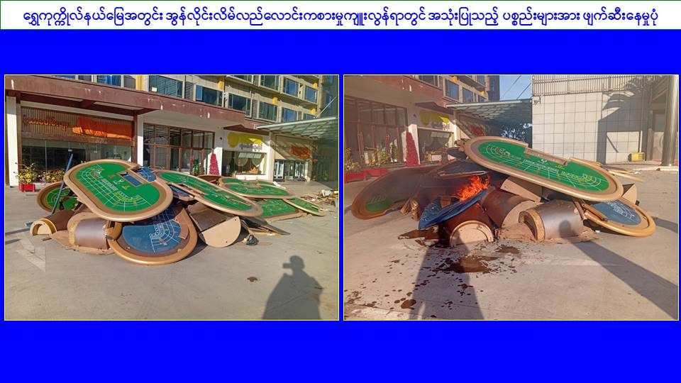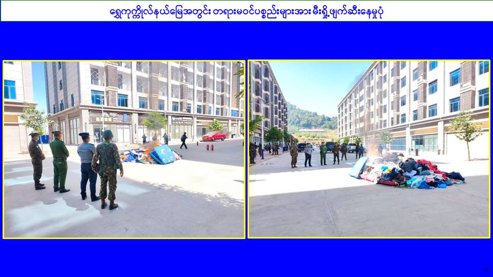 မြန်မာနိုင်ငံအစိုးရအနေဖြင့် အွန်လိုင်းလိမ်လည်မှုများနှင့် အွန်လိုင်းလောင်းကစားမှုများ အများဆုံးအခြေချလုပ်ကိုင်လျက်ရှိကြသည့် ရွှေကုက္ကိုလ်နယ်မြေနှင့် KK Park နယ်မြေများ၌ လုံခြုံရေးတပ်ဖွဲ့ဝင်များ၊ အုပ်ချုပ်ရေးအဖွဲ့အစည်းများနှင့် ဒေသတွင်းတာဝန်ရှိသူများအပါအဝင် အဖွဲ့စုံပါဝင်သည့် ပူးပေါင်းအဖွဲ့ဖြင့် တရားမဝင်အဆောက်အအုံများအတွင်း ဝင်ရောက်ရှင်းလင်းခြင်း၊ အွန်လိုင်းလိမ်လည်လောင်းကစားမှု လုပ်ငန်းစဉ်များတွင် အသုံးပြုခဲ့သည့် သိမ်းဆည်းရမိပစ္စည်းများနှင့် တရားမဝင် အဆောက်အအုံများအား စနစ်တကျဖြိုချဖျက်ဆီးခြင်းများ ဆက်လက်ဆောင်ရွက်လျက်ရှိသည်။