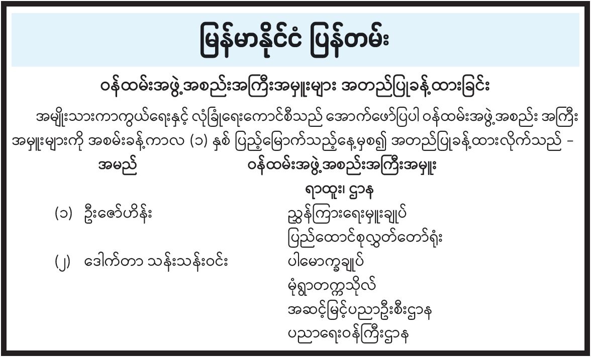 ဝန်ထမ်းအဖွဲ့အစည်းအကြီးအမှူးများ အတည်ပြုခန့်ထားခြင်း