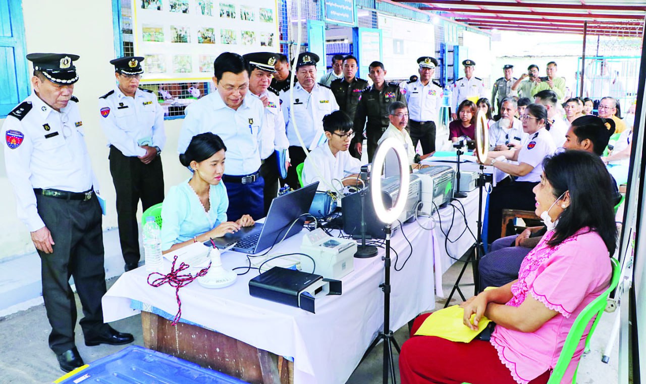 ထို့နောက် ဒေသခံပြည်သူများအား ပန်းခင်းစီမံချက်အဆင့် (၃) ဖြင့် အိမ်ထောင်စုလူဦးရေစာရင်းနှင့် နိုင်ငံသားစိစစ်ရေးကတ် ထုတ်ပေးနိုင်ရေးအတွက် လုပ်ထုံးလုပ်နည်းနှင့် အညီစိစစ်၍ One Stop Service ဖြင့် လုပ်ငန်းစဉ်အဆင့်ဆင့်ဆောင်ရွက်နေမှုနှင့် နိုင်ငံသားစိစစ်ရေးကတ်ရရှိပြီးသူများအား e-ID စနစ်ဖြင့် Biographic/ Biometric ကောက်ယူကာ Unique ID နံပါတ် တစ်ပါတည်း ဆောင်ရွက်ထုတ်ပေးနေမှု အခြေအနေများကို လှည့်လည်ကြည့်ရှုအားပေးသည်။