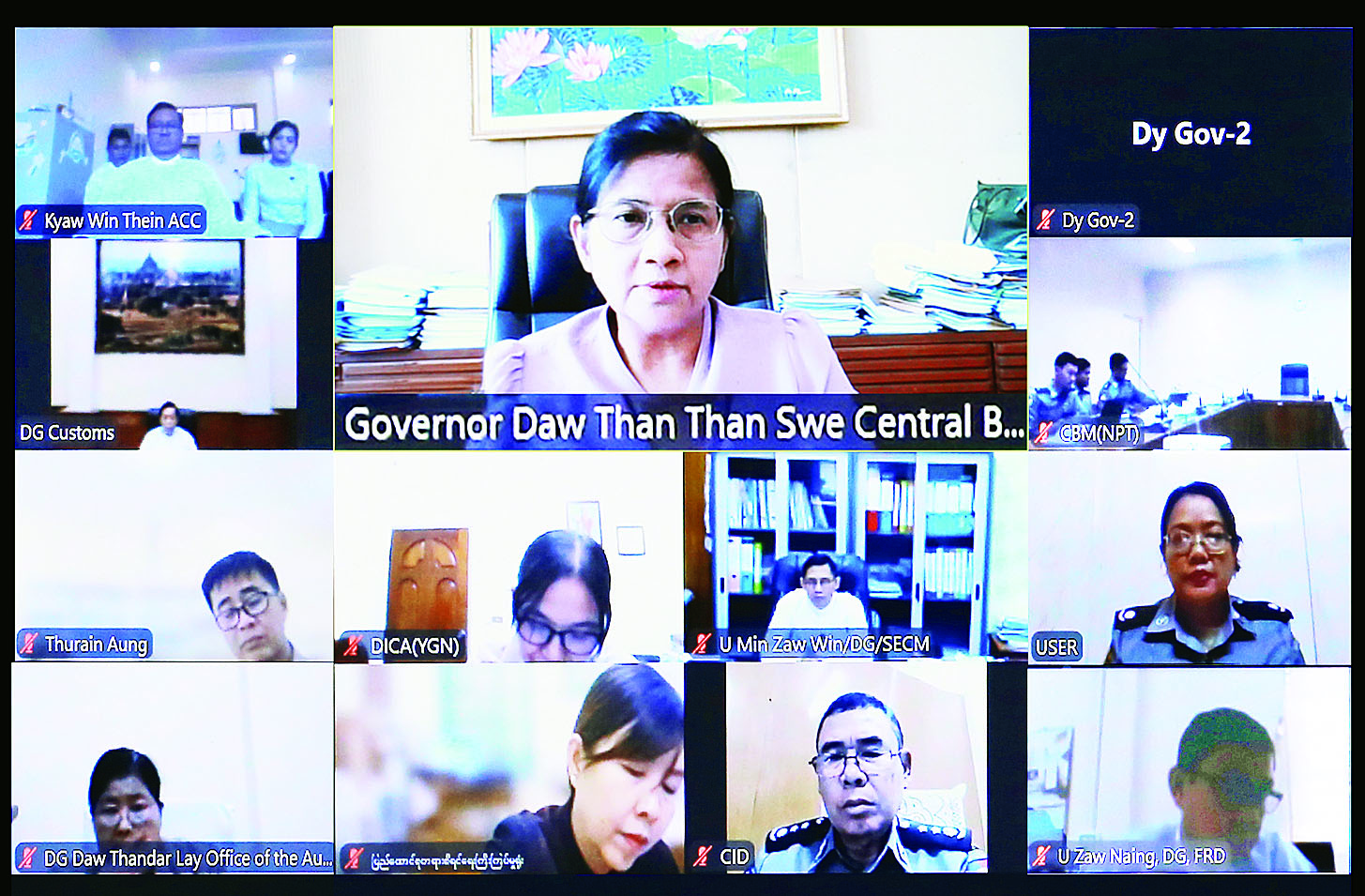 ငွေကြေးခဝါချမှုနှင့်အကြမ်းဖက်မှုကို ငွေကြေးထောက်ပံ့မှုတိုက်ဖျက်ရေးလုပ်ငန်းအဖွဲ့ဥက္ကဋ္ဌ (မြန်မာနိုင်ငံတော်ဗဟိုဘဏ်ဥက္ကဋ္ဌ) ဦးဆောင်၍ လုပ်ငန်းအဖွဲ့ဝင်များဖြင့် ညှိနှိုင်းအစည်းအဝေးကို ယနေ့ညနေ ၃ နာရီတွင် Video Conferencing ဖြင့် ကျင်းပသည်။