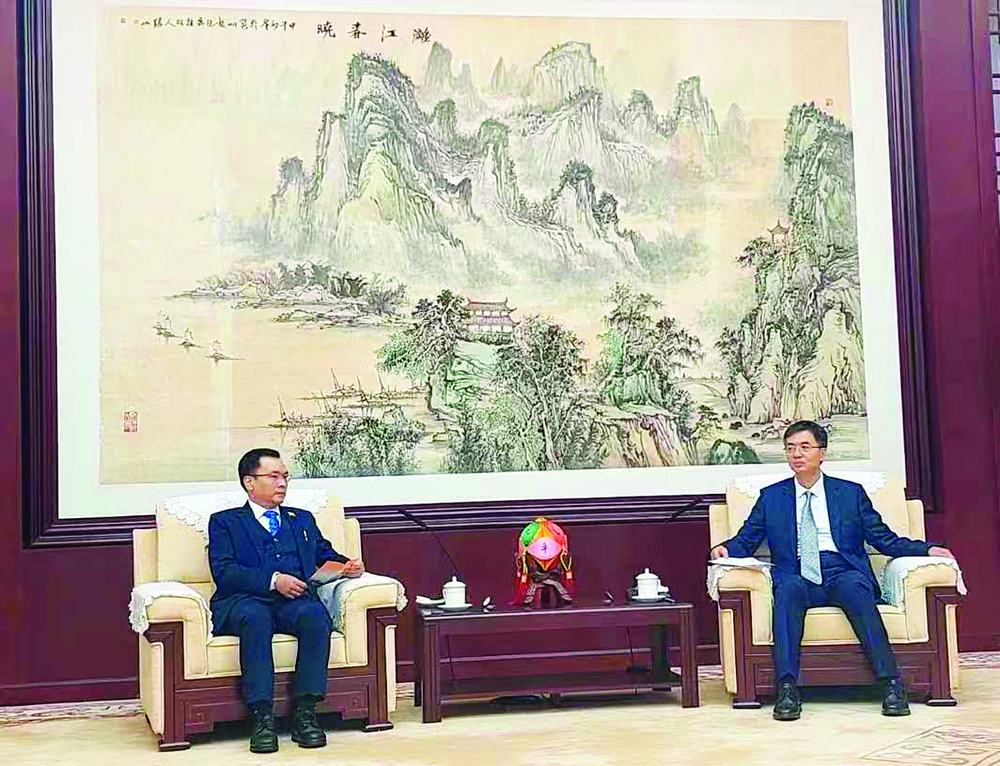 ခရီးစဉ်တွင် ဒုတိယဝန်ကြီးသည် ကွမ်ရှီးကွန်မြူနစ်ပါတီအတွင်းရေးမှူး Mr. Chen Gang နှင့် ယင်းနေ့မွန်းလွဲပိုင်းတွင် ကွမ်ရှီးကွန်မြူနစ်ပါတီကော်မတီရုံး၌ တွေ့ဆုံဆွေးနွေးသည်။ ဆွေးနွေးပွဲသို့ ကွမ်ရှီးကိုယ်ပိုင်အုပ်ချုပ်ခွင့်ရဒေသ ပါတီကော်မတီအမြဲတမ်းအဖွဲ့ဝင်နှင့် ဒုတိယဥက္ကဋ္ဌ လူရှင်နင်းနှင့် တာဝန်ရှိသူများ၊မြန်မာကိုယ်စားလှယ်အဖွဲ့နှင့်အတူ နန်နင်းမြို့ မြန်မာကောင်စစ်ဝန်ချုပ်ရုံးမှ ကောင်စစ်ဝန်ချုပ် ဒေါ်ခိုင်ဆုလင်းတို့ တက်ရောက်ကြသည်။