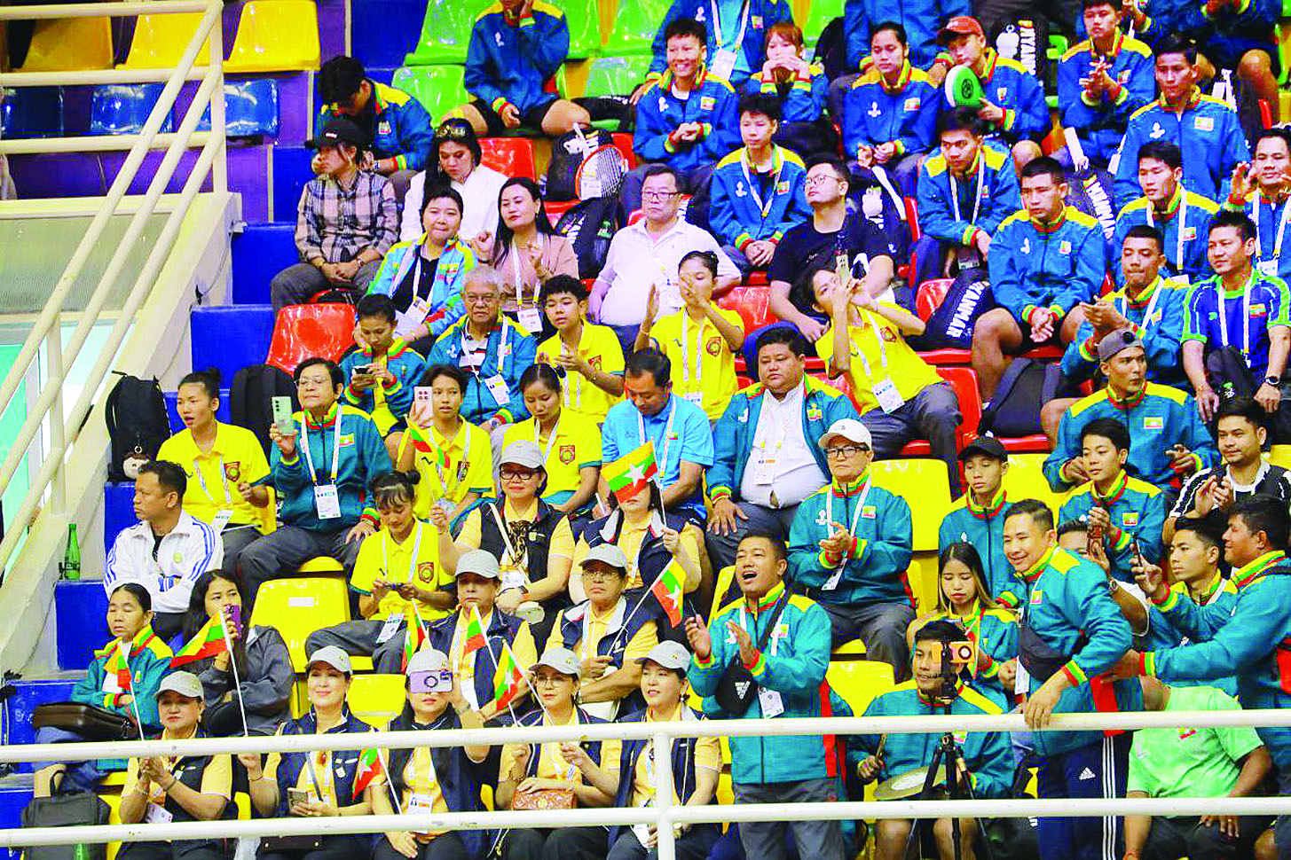 မြန်မာနိုင်ငံအိုလံပစ်ကော်မတီဥက္ကဋ္ဌ အားကစားနှင့်လူငယ်ရေးရာဝန်ကြီးဌာနနှင့် ဟိုတယ်နှင့်ခရီးသွားလာရေးဝန်ကြီးဌာန ပြည်ထောင်စုဝန်ကြီး Jeng Phang နော်တောင်၊ ပြန်ကြားရေးဝန်ကြီးဌာန ဒုတိယဝန်ကြီး ဦးရဲတင့်၊ ရန်ကုန်တိုင်းဒေသကြီး လူမှုရေးရာဝန်ကြီး ဦးဌေးအောင်၊ ထိုင်းနိုင်ငံဆိုင်ရာ မြန်မာနိုင်ငံသံအမတ်ကြီး ဦးဇော်ဇော်စိုး၊ စစ်သံမှူးကြီး ဗိုလ်မှူးချုပ် ဝင်းသူလင်း၊ မြန်မာအားကစားအဖွဲ့ခေါင်းဆောင်နှင့် အုပ်ချုပ်မှုအဖွဲ့ဝင်များ၊ မြန်မာနိုင်ငံပိုက်ကျော်ခြင်းအဖွဲ့ချုပ်ဥက္ကဋ္ဌနှင့် တာဝန်ရှိသူများ၊ မြန်မာနိုင်ငံအားကစားအဖွဲ့ချုပ်ဥက္ကဋ္ဌနှင့် တာဝန်ရှိသူများ တက်ရောက်ကြည့်ရှုအားပေးကြသည်။