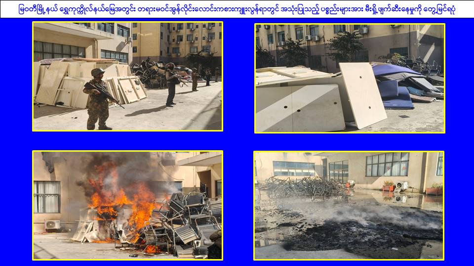 ၎င်းအပြင် မြဝတီမြို့နယ်အတွင်းရှိ KK Park နယ်မြေနှင့် ရွှေကုက္ကိုလ်နယ်မြေတို့၌ အွန်လိုင်းလိမ်လည်လောင်းကစားမှုကျူးလွန်ရာတွင် အသုံးပြုသည့်ပစ္စည်းများအား ထပ်မံ၍ အသုံးပြုနိုင်ခြင်းမရှိစေရန်အတွက် ယနေ့တွင်လည်း စနစ်တကျမီးရှို့ဖျက်ဆီးခဲ့ကြောင်း သိရှိရသည်။