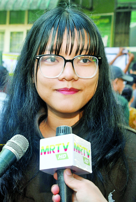 ကျွန်မအနေနဲ့ ပထမဆုံးအကြိမ် မဲပေးတာဖြစ်ပါတယ်။ တစ်ခါမှမပေးဘူးတော့ စိတ်လှုပ်ရှားတယ်၊ အခုက မဲရုံကိုအစ်ကိုနဲ့လာတာပါ။ ရောက်ရောက်ချင်း တန်းစီပြီးမဲစာရင်းနံပါတ်ပြ၊ လက်မှတ်ထိုးရတယ် ပြီးတော့မှ ခလုတ်နှိပ်မဲပေးရတယ်၊ ခလုတ်နှိပ်မဲပေးရတာ လွယ်ကူတယ်လို့ ထင်ပါတယ်။ လူငယ်တစ်ဦး အနေနဲ့ နောင်တက်လာမယ့် အစိုးရတစ်ရပ်ကို စီးပွားရေးနဲ့ ပညာရေးကို ဦးစားပေးဆောင်ရွက် စေချင်ပါတယ်။