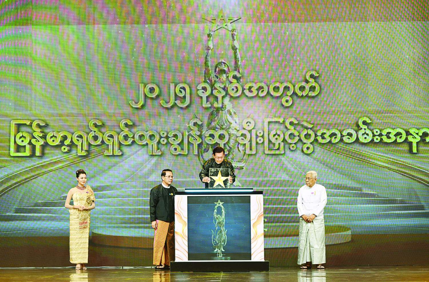 ၂၀၂၅ ခုနှစ်အတွက် မြန်မာ့ရုပ်ရှင် ထူးချွန်ဆုချီးမြှင့်ပွဲအခမ်းအနားကို ယနေ့ညနေပိုင်းတွင် နေပြည်တော်ရှိ မြန်မာအပြည်ပြည်ဆိုင်ရာ ကွန်ဗင်းရှင်းဗဟိုဌာန - ၁ (MICC1) ၌ ကျင်းပရာ ပြည်ထောင်စုသမ္မတ မြန်မာနိုင်ငံတော်ယာယီသမ္မတ နိုင်ငံတော်လုံခြုံရေးနှင့် အေးချမ်းသာယာရေးကော်မရှင်ဥက္ကဋ္ဌ ဗိုလ်ချုပ်မှူးကြီး မင်းအောင်လှိုင် တက်ရောက်အဖွင့်အမှာစကားပြောကြားပြီး ထူးချွန်ဆုများ ပေးအပ်ချီးမြှင့်သည်။