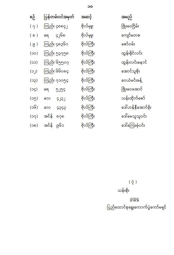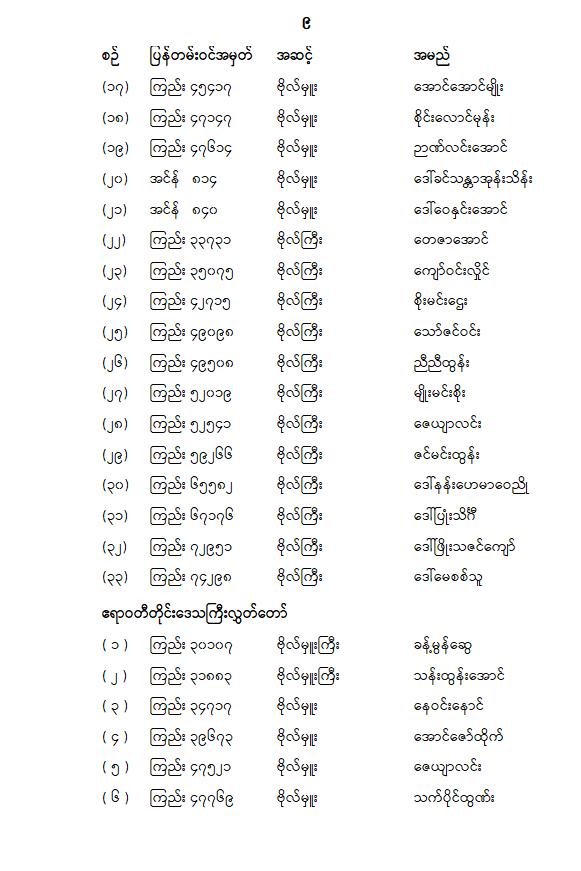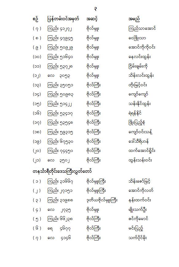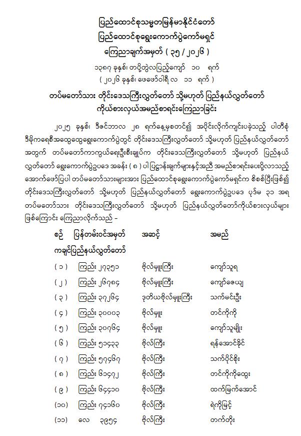 တပ်မတော်သား တိုင်းဒေသကြီးလွှတ်တော် သို့မဟုတ် ပြည်နယ်လွှတ်တော် ကိုယ်စားလှယ်အမည်စာရင်းကြေညာခြင်း
