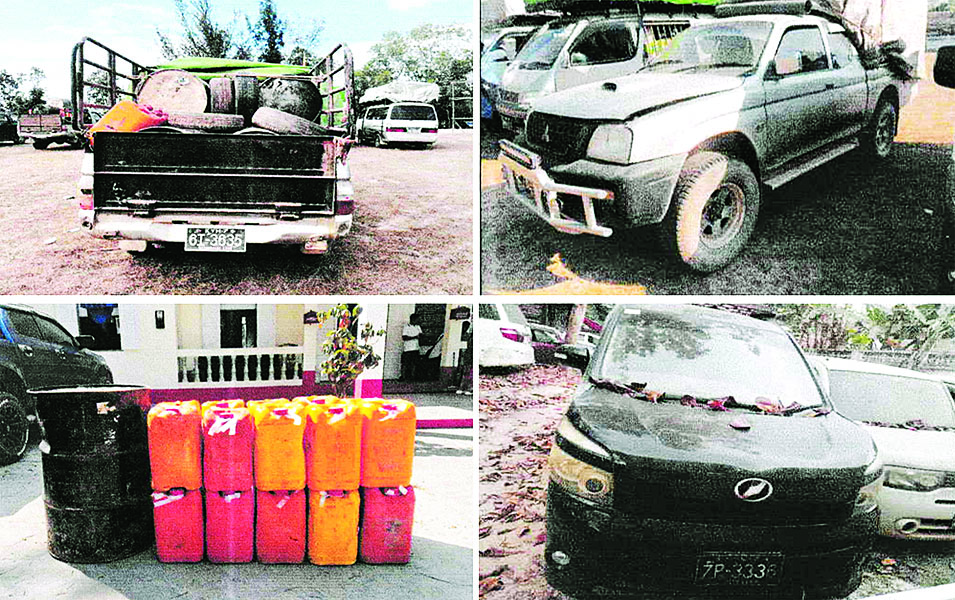 တရားမဝင် သစ်မျိုးစုံ၊ စက်သုံးဆီများ၊ လိုင်စင်မဲ့မော်တော်ဆိုင်ကယ်၊ လိုင်စင်မဲ့မော်တော်ယာဉ်များနှင့် တရားမဝင်ကုန်ပစ္စည်းတင်မော်တော်ယာဉ် ဖမ်းဆီးရမိ