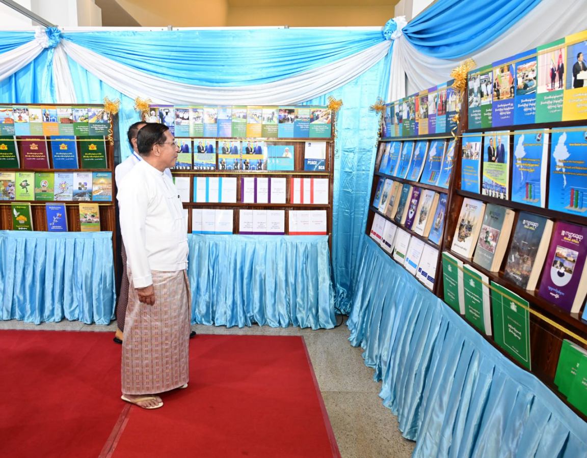 အခမ်းအနားအပြီးတွင် နိုင်ငံတော်ယာယီသမ္မတ နိုင်ငံတော်လုံခြုံရေးနှင့်အေးချမ်းသာယာရေးကော်မရှင်ဥက္ကဋ္ဌနှင့် အခမ်းအနား တက်ရောက်လာကြသူများသည် မြန်မာ့မျက်နှာစာသစ်ဖိုရမ် အထိမ်းအမှတ်ပြခန်းများအား စိတ်ပါဝင်စားစွာဖြင့် လှည့်လည်ကြည့်ရှုခဲ့ကြသည်။