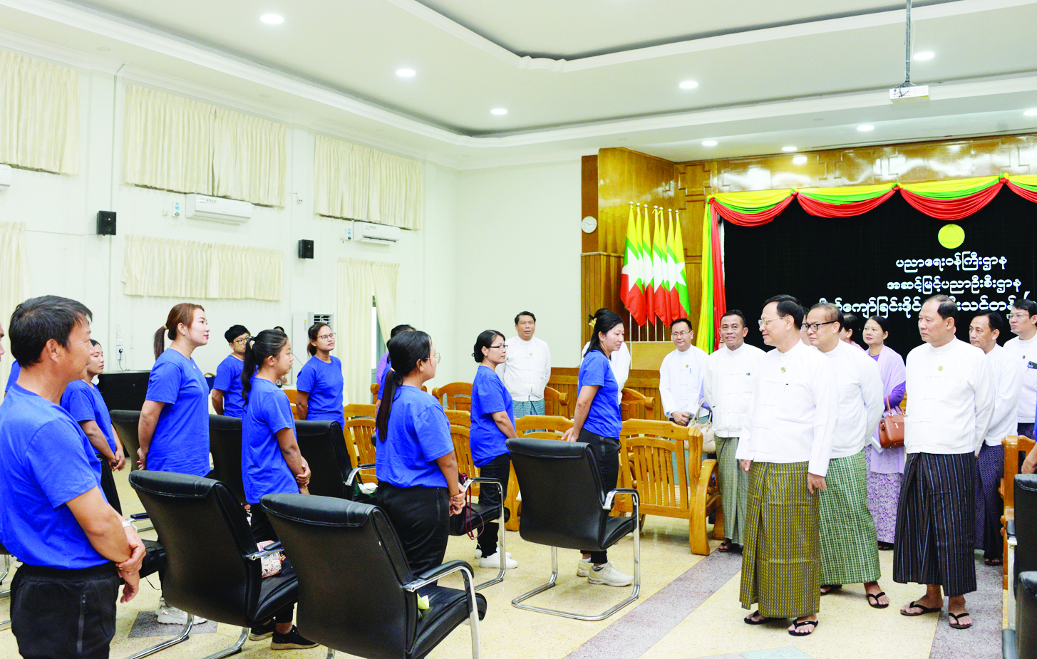 ပညာရေးဝန်ကြီးဌာန အဆင့်မြင့်ပညာဦးစီးဌာန ပိုက်ကျော်ခြင်း ဒိုင်လူကြီးသင်တန်း (၁/၂၀၂၆) ဖွင့်ပွဲအခမ်းအနားကို ယနေ့နံနက်ပိုင်းတွင် နေပြည်တော် ရုံးအမှတ် (၁၃) ပညာရေးဝန်ကြီးဌာန အစည်းအဝေးခန်းမ၌ ကျင်းပရာ ဒုတိယဝန်ကြီး ဒေါက်တာဇော်မြင့်၊ ညွှန်ကြားရေးမှူးချုပ်များ၊ ဒုတိယအမြဲတမ်းအတွင်းဝန်များ၊ အားကစားနှင့် ကာယပညာဦးစီးဌာနနှင့် မြန်မာနိုင်ငံပိုက်ကျော်ခြင်းအဖွဲ့ချုပ်တို့မှ တာဝန်ရှိသူများ တက်ရောက်ကြသည်။