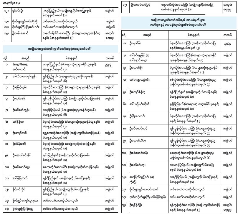 ဆက်လက်၍ အမျိုးသား လွှတ်တော်ဥက္ကဋ္ဌက လွှတ်တော်အခွင့်အရေးကော်မတီတွင် ကော်မတီဥက္ကဋ္ဌအဖြစ် ကချင်ပြည်နယ် (မဲအများဆုံးရသူအနိုင် ယူစနစ်) မဲဆန္ဒနယ် အမှတ်(၂)မှ Jeng Phang နော်တောင်၊ အတွင်းရေးမှူးအဖြစ် ဧရာဝတီတိုင်းဒေသကြီး (အချိုးကျ ကိုယ်စားပြုစနစ်) မဲဆန္ဒနယ်အမှတ်(၁)မှ ဦးအောင်တင်မြင့် အပါအဝင် အဖွဲ့ဝင် ၁၅ ဦး၏ အမည်စာရင်း၊ ကော်မတီ၏ တာဝန်၊ လုပ်ပိုင်ခွင့်၊ ရပိုင်ခွင့်နှင့် သက်တမ်းတို့ကို အမျိုးသားလွှတ်တော်၏ အတည်ပြုချက်ရယူရာ လွှတ်တော်ကသဘောတူသဖြင့် လွှတ်တော်အခွင့်အရေးကော်မတီဖွဲ့စည်းခြင်းနှင့် ကော်မတီ၏တာဝန်၊ လုပ်ပိုင်ခွင့်၊ ရပိုင်ခွင့်နှင့် သက်တမ်းတို့ကို အမျိုးသားလွှတ်တော်က အတည်ပြုကြောင်းကြေညာသည်။