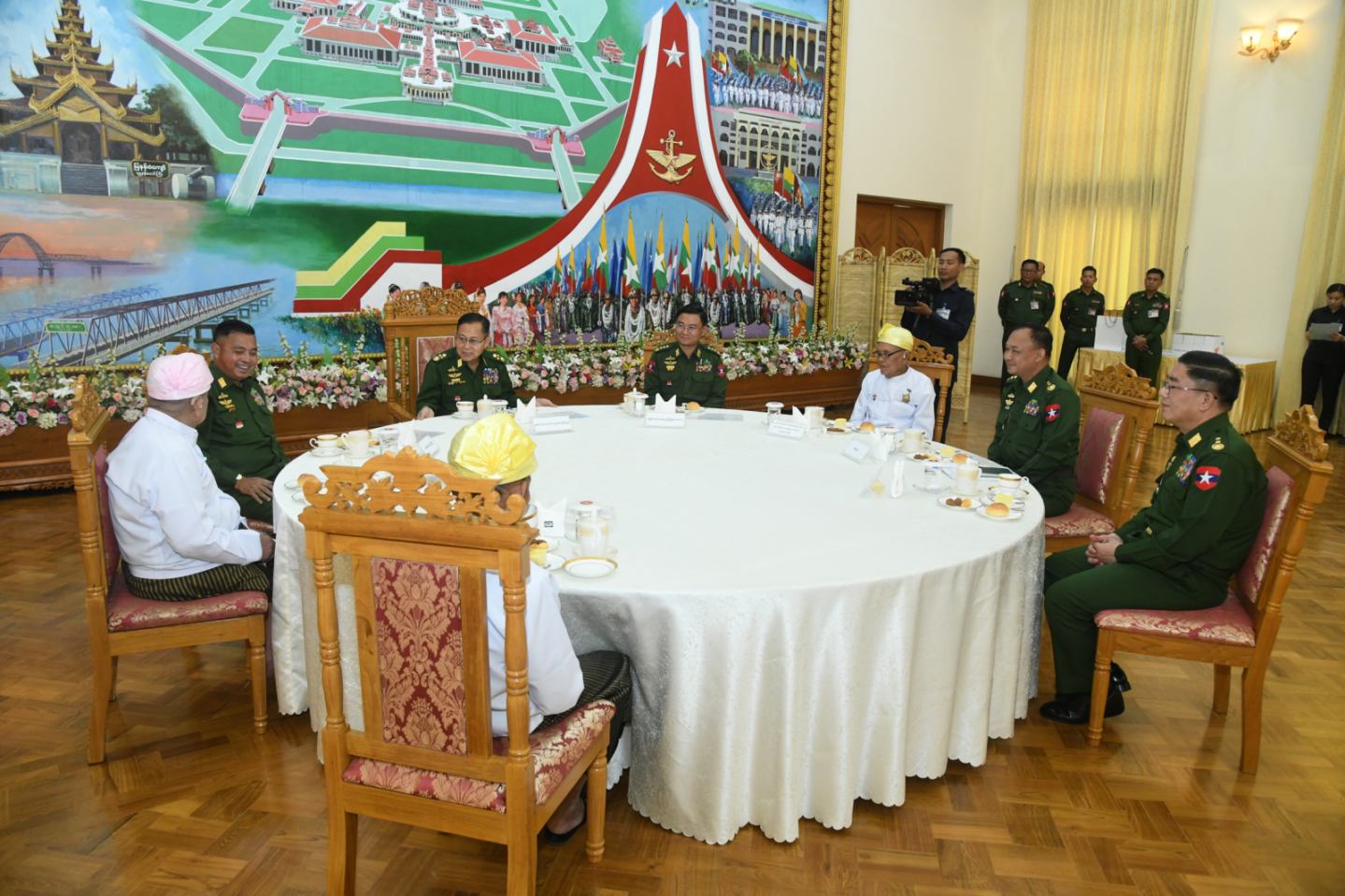 ယင်းနောက် နိုင်ငံတော်လုံခြုံရေးနှင့် အေးချမ်းသာယာရေးကော်မရှင် ဒုတိယဥက္ကဋ္ဌ ဒုတိယတပ်မတော်ကာကွယ်ရေးဦးစီးချုပ်နှင့် တာဝန်ရှိသူများသည် လွတ်လပ်ရေးမော်ကွန်းဝင်ပုဂ္ဂိုလ်များနှင့်အတူ လက်ဘက်ရည်နှင့် စားသောက်ဖွယ်ရာများ အတူတကွသုံးဆောင်ကြသည်။