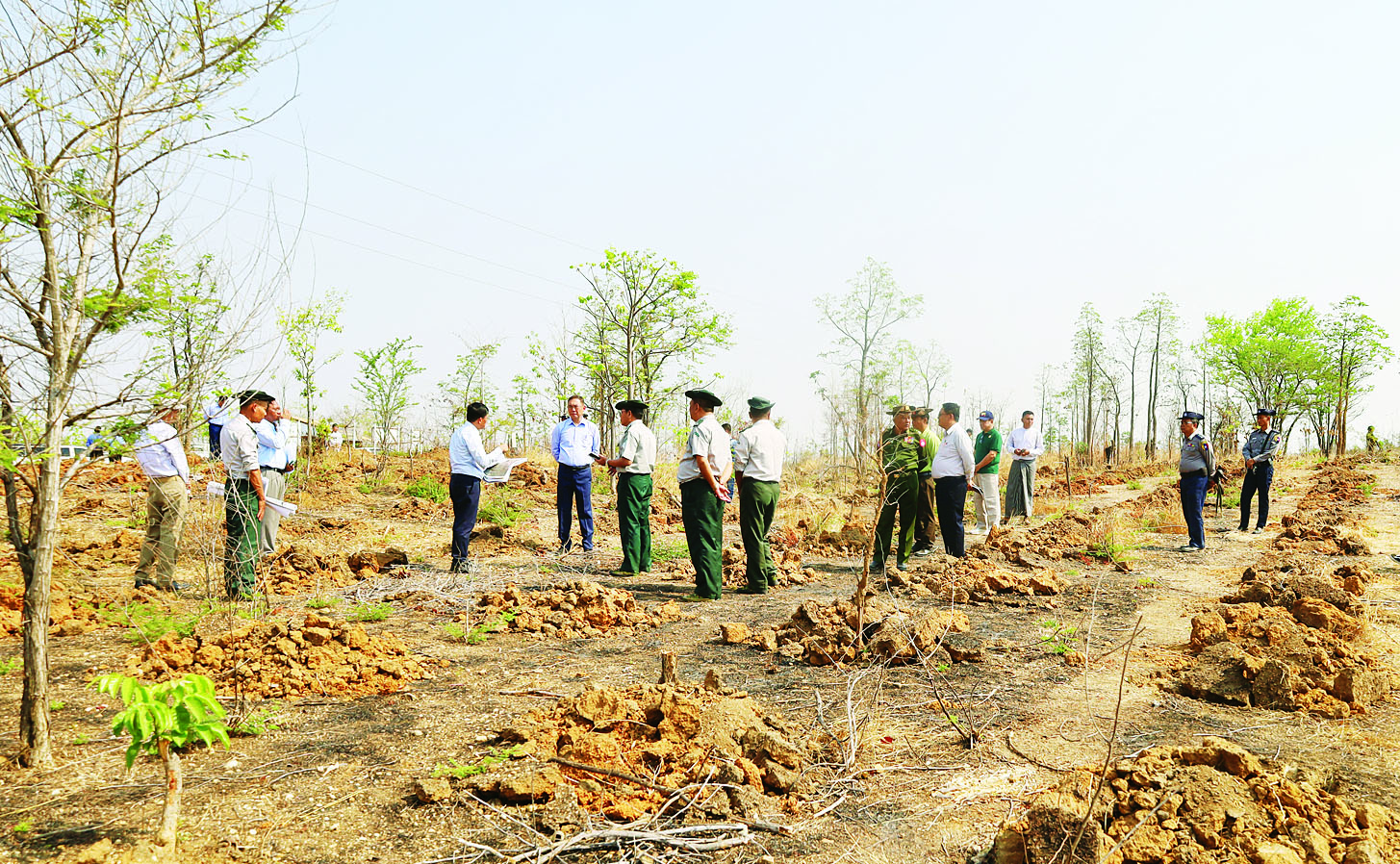 ဆက်လက်၍ ပြည်ထောင်စုဝန်ကြီးသည် မင်းဘူးမြို့နယ် ဆင်ခေါင်း-ဇီးအိုင် ကြိုးပြင်ကာကွယ် တောအတွင်း ၂၀၂၆ ခုနှစ် မိုးရာသီတွင် ကျေးရွာထင်းစိုက်ခင်း ဧက ၃၀၊ အထူးစိမ်းလန်းစိုပြည်ရေး စိုက်ခင်းဧက ၄၀ နှင့် ဧက ၃၀ တို့ တည်ထောင်ဆောင်ရွက်နိုင်ရေး မြေပြုပြင်ပြီးစီးမှုအခြေအနေကို ကြည့်ရှုစစ်ဆေးပြီး စိုက်ခင်းတည်ထောင်ခြင်းလုပ်ငန်းစဉ်များ အဆင့်အလိုက် အချိန်မီပြီးစီးရေး၊ တစ်ပင်စိုက်တစ်ပင်ရှင်အောင် ထိန်းသိမ်းစောင့်ရှောက်ရေး ကြိုးပမ်းဆောင်ရွက်သွားကြရန် မှာကြားသည်။