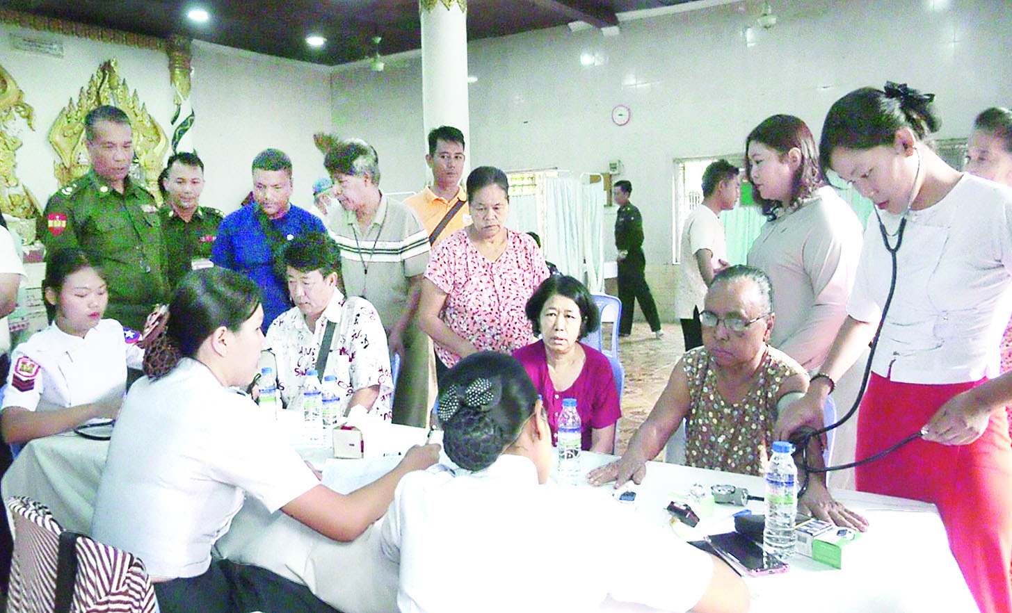 ထိုသို့ဆောင်ရွက်ပေးရာတွင် ဆေးကုသရေးအဖွဲ့က သံဃာတော် ၃၈၂ ပါးအား အရိုးအကြော ရောဂါ၊ နား/နှာခေါင်း/လည်ချောင်းရောဂါ၊ ဖျားနာရောဂါ၊ ခွဲစိတ်ကုသမှုဆိုင်ရာရောဂါ၊ ကလေးရောဂါ၊ နှလုံးရောဂါ၊ သွားနှင့်ခံတွင်းရောဂါ၊ မျက်စိရောဂါ၊ ဆီးချိုရောဂါ၊ အထွေထွေရောဂါတို့နှင့်ပတ်သက်၍ လိုအပ်သည့် ကျန်းမာရေးစစ်ဆေး ကုသပေးခြင်း၊ Ultrasound စက်ဖြင့် ရောဂါရှာဖွေပေးခြင်း၊ ECG စက်ဖြင့် နှလုံးစမ်းသပ်ပေးခြင်းများ ဆောင်ရွက်ပေးပြီး ဆေးရုံတက်ရောက်ကုသရန် လိုအပ်သည့် လူနာများအား တပ်မတော်ဆေးရုံသို့ တက်ရောက်ကုသနိုင်ရေး စီစဉ်ဆောင်ရွက်ပေးသည်။
