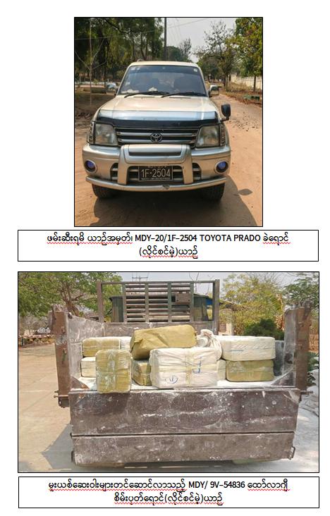 သို့ဖြစ်၍ ဖမ်းဆီးရမိတရားခံများအား ဥပဒေအရ ထိရောက်စွာအရေးယူနိုင်ရေး ဆက်လက်ဆောင်ရွက်သွားမည်ဖြစ်ပြီး တရားခံပြေးများအပါအဝင် ဆက်စပ်တရားခံများအား ဖော်ထုတ်ဖမ်းဆီးရမိရေး ဆောင်ရွက်လျက်ရှိကြောင်းနှင့် မူးယစ်ဆေးဝါးသယ်ဆောင်သည့် သတင်းများရရှိပါက သက်ဆိုင်ရာသို့ လျှို့ဝှက်စွာသတင်းပေးတိုင်ကြားနိုင်ပါကြောင်း၊ သတင်းပေးသူနှင့် ပူးပေါင်းပါဝင်ဖမ်းဆီးပေးသူများအား ထိုက်တန်စွာလျှို့ဝှက်၍ ဆုငွေများချီးမြှင့်ပေးမည်ဖြစ်ကြောင်း အသိပေး သတင်းထုတ်ပြန်အပ်ပါသည်။