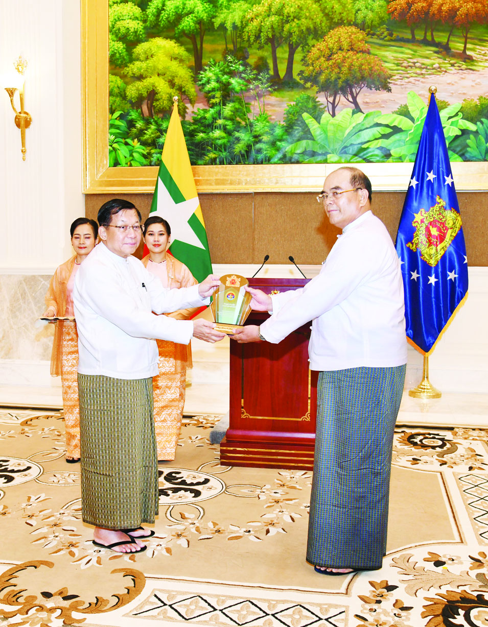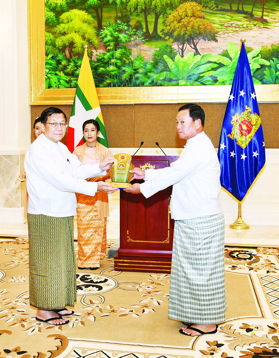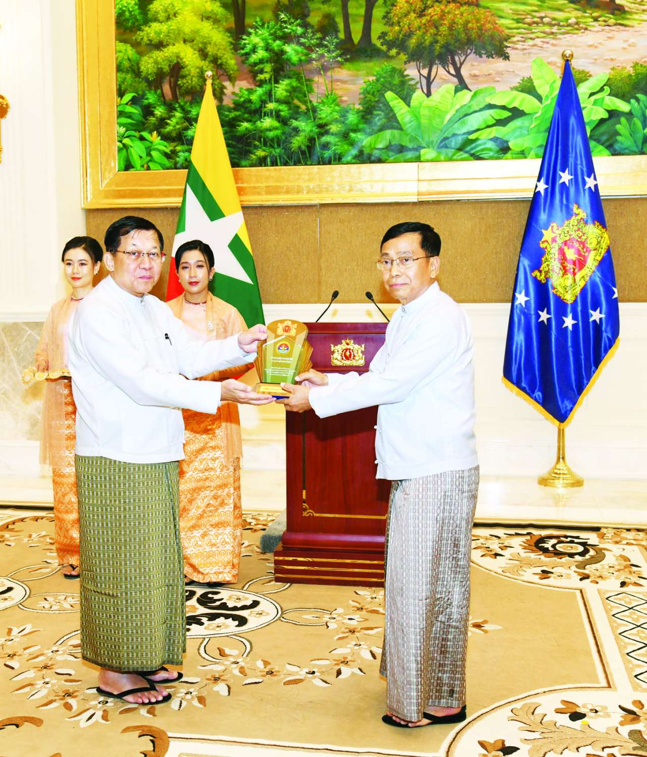 ထို့နောက် ရွေးကောက်တင်မြှောက်ခြင်းခံရသော သမ္မတ နိုင်ငံတော်လုံခြုံရေးနှင့် အေးချမ်းသာယာရေးကော်မရှင်ဥက္ကဋ္ဌ ဗိုလ်ချုပ်မှူးကြီး မင်းအောင်လှိုင်က ကော်မရှင်အဖွဲ့ဝင်များဖြစ်ကြသည့် ဗိုလ်ချုပ်ကြီး မောင်မောင်အေး၊ ဒုတိယဗိုလ်ချုပ်ကြီး ဖုန်းမြတ်၊ ဒုတိယဗိုလ်ချုပ်ကြီး ရာပြည့်၊ ဗိုလ်ချုပ်ကြီး ကျော်စွာလင်း၊ စက်မှုဝန်ကြီးဌာန ပြည်ထောင်စုဝန်ကြီး ဒေါက်တာ ချာလီသန်းနှင့် ကာကွယ်ရေးဦးစီးချုပ်ရုံးမှ အဆင့်မြင့်တပ်မတော်အရာရှိကြီးများ၊ အငြိမ်းစားအဆင့်မြင့်တပ်မတော်အရာရှိကြီးများအား ဂုဏ်ပြုအထိမ်းအမှတ်လက်ဆောင်များ ပေးအပ်ချီးမြှင့်သည်။