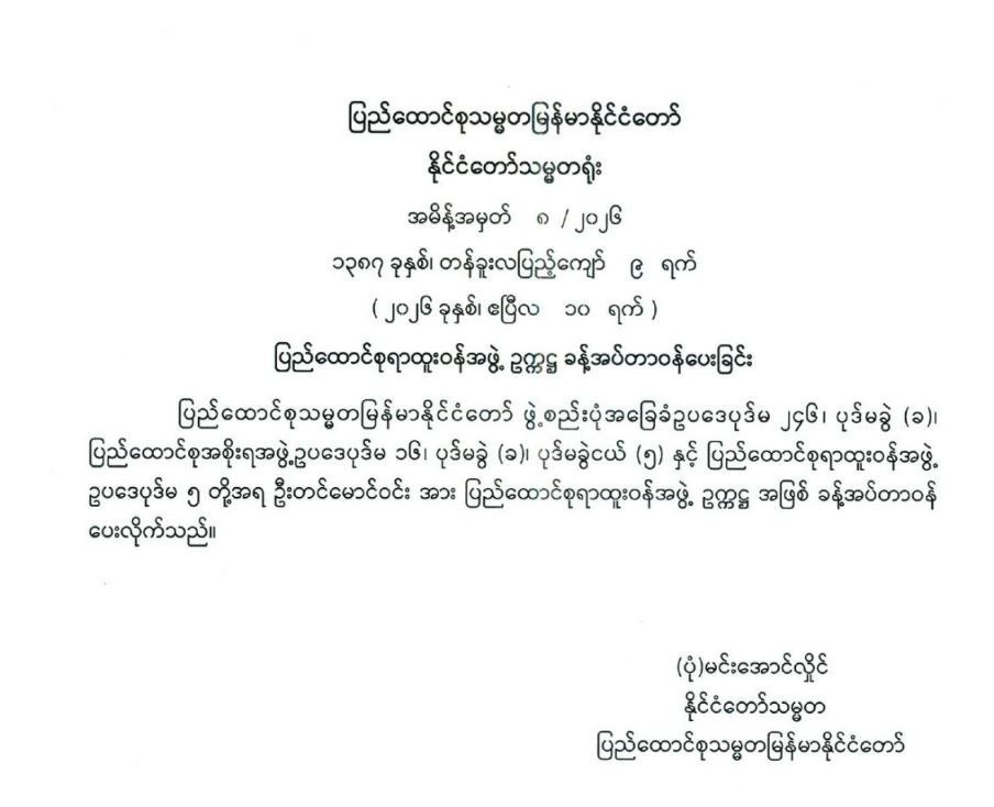 ပြည်ထောင်စုရာထူးဝန်အဖွဲ့ဥက္ကဋ္ဌ ခန့်အပ်တာဝန်ပေးခြင်း