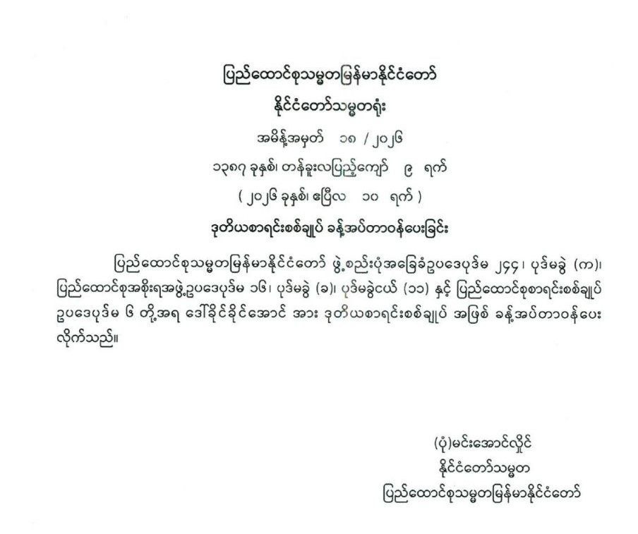 ဒုတိယစာရင်းစစ်ချုပ် ခန့်အပ်တာဝန်ပေးခြင်း