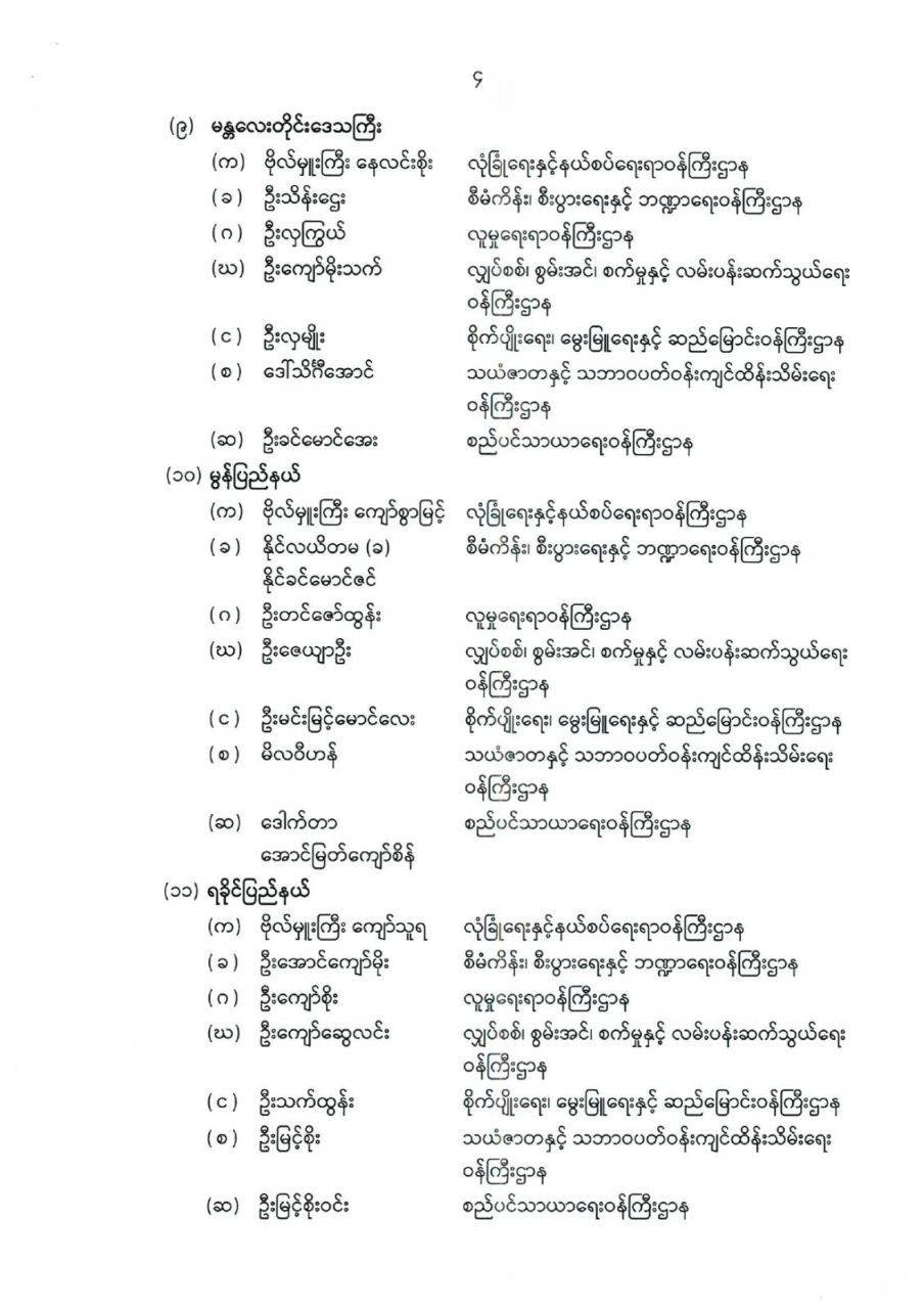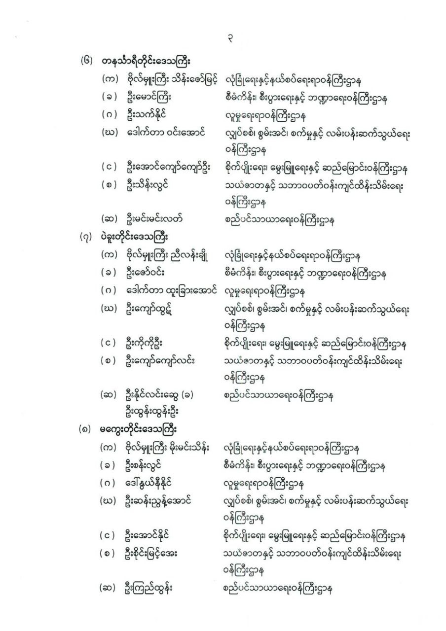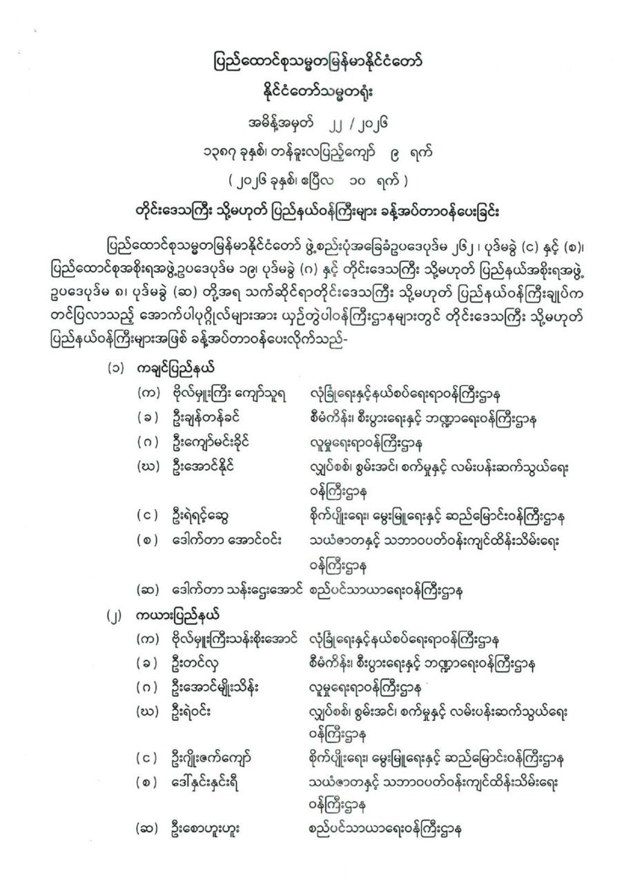 တိုင်းဒေသကြီး သို့မဟုတ် ပြည်နယ်ဝန်ကြီးများ ခန့်အပ်တာဝန်ပေးခြင်း