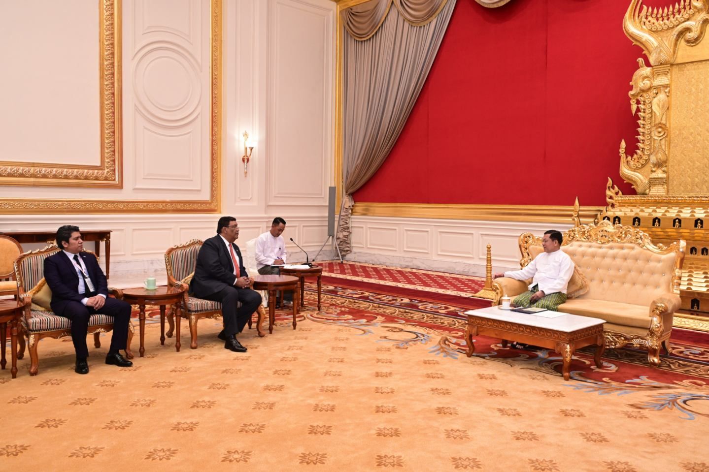 ပြည်ထောင်စုသမ္မတ မြန်မာနိုင်ငံတော်သမ္မတ ဦးမင်းအောင်လှိုင်ထံ နိုင်ငံတော်သမ္မတအဖြစ် ကတိသစ္စာပြုခြင်းအခမ်းအနားသို့ တက်ရောက်ခဲ့သည့် နီကာရာဂွါသမ္မတနိုင်ငံ၊ နိုင်ငံခြားရေးဝန်ကြီး H.E. Mr. Valdrack Jaentschke ဦးဆောင်သည့် ကိုယ်စားလှယ်အဖွဲ့က ယနေ့မွန်းလွဲပိုင်းတွင် နိုင်ငံတော်သမ္မတ၏ ဧည့်ဆောင်တော်၌ လာရောက်ဂါရဝပြုတွေ့ဆုံသည်။