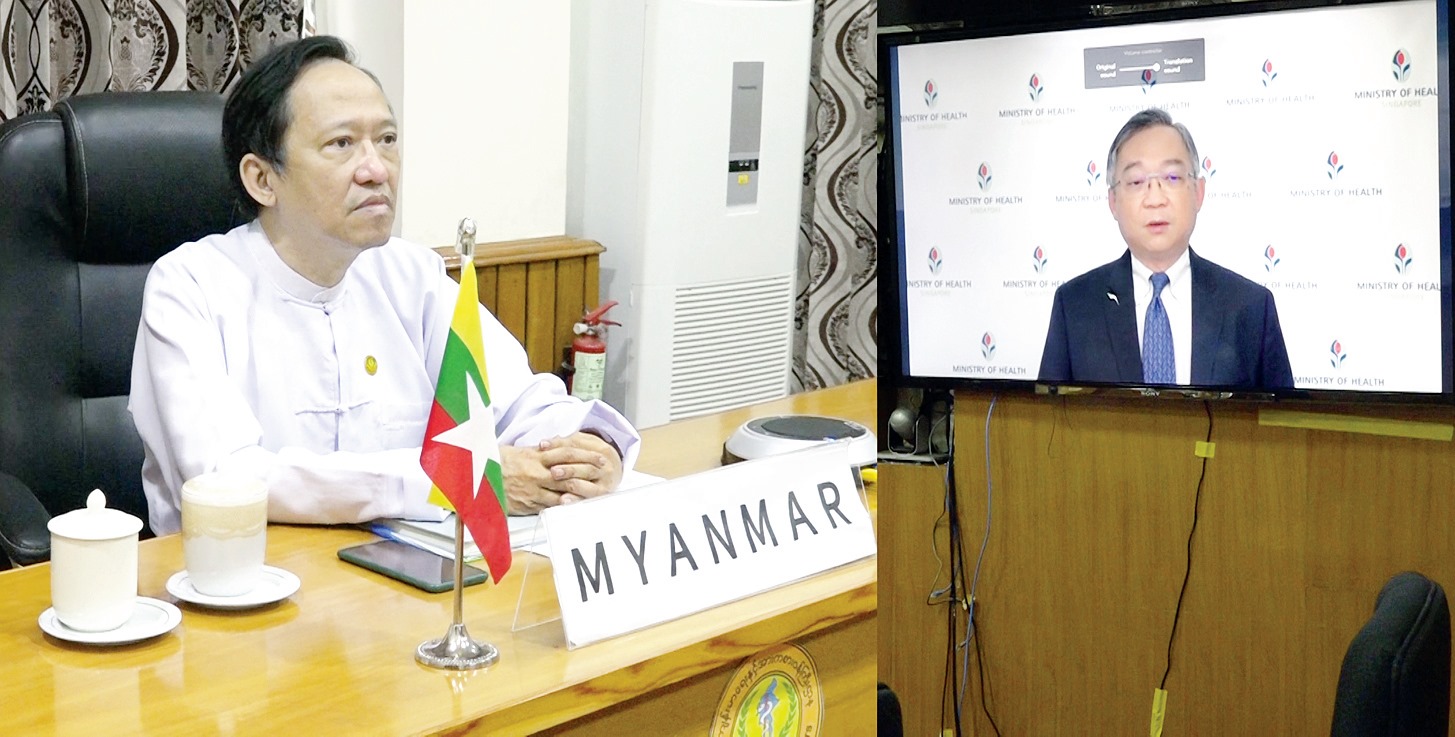 ကျန်းမာရေးနှင့်အားကစားဝန်ကြီးဌာန အမြဲတမ်းအတွင်းဝန်ပါမောက္ခ ဒေါက်တာသက်ခိုင်ဝင်းက အာဆီယံအဖွဲ့နှင့် တရုတ်ပြည်သူ့သမ္မတ နိုင်ငံအကြား ကျန်းမာရေး ပူးပေါင်းဆောင်ရွက်မှုများ၊ နည်းပညာနှင့် အတွေ့အကြုံ ဖလှယ်ခြင်းများ၊ ကိုဗစ်-၁၉ ရောဂါ တိုက်ဖျက်ရေးနှင့် ဒေသ တွင်း ကျန်းမာရေးလုံခြုံမှု (Health Security)အတွက် အရေးပါပုံများကို ထည့်သွင်းပြောကြားခဲ့ပြီး တရုတ်ပြည်သူ့ သမ္မတနိုင်ငံမှ အာဆီယံအဖွဲ့ဝင်နိုင်ငံများသို့ ကူညီထောက်ပံ့ မှုများအတွက် ကျေးဇူးတင်ရှိပါကြောင်း၊ မြန်မာနိုင်ငံနှင့် ကျန်းမာရေးနှင့် အားကစားဝန်ကြီး ဌာနအနေဖြင့် ဒေသတွင်းပူးပေါင်း ဆောင်ရွက်မှုများကို အထူးအလေးထား ပါကြောင်း၊ လတ်တလော ဖြစ်ပွားနေသော ကမ္ဘာ့ကပ်ရောဂါ ကိုဗစ်-၁၉ တိုက်ဖျက်ရေးအတွက် နိုင်ငံတော်၏အတိုင်ပင်ခံ ပုဂ္ဂိုလ် ဒေါ်အောင်ဆန်းစုကြည် ဦးဆောင်သော Corona Virus Disease 2019 (COVID-19) ကာကွယ်၊ ထိန်းချုပ်၊ ကုသရေးအမျိုးသားအဆင့် ဗဟိုကော်မတီမှ ဦးဆောင်၍ ပြည်သူလူထု ပူးပေါင်းပါဝင်မှုဖြင့် ဆောင်ရွက်နေပါကြောင်း၊ အာဆီယံအဖွဲ့ဝင်နိုင်ငံများနှင့် တရုတ်ပြည်သူ့ သမ္မတနိုင်ငံ အကြား ပူးပေါင်းဆောင်ရွက်မှု ပိုမိုတိုးမြှင့်ခြင်းဖြင့် ဒေသတွင်း ကျန်းမာရေး ဖွံ့ဖြိုးတိုးတက်မှုနှင့် တီထွင်ဆန်းသစ် မှုများ ပိုမိုတိုးမြှင့်ရန် ဆန္ဒပြုပါကြောင်း ပြောကြားသည်။