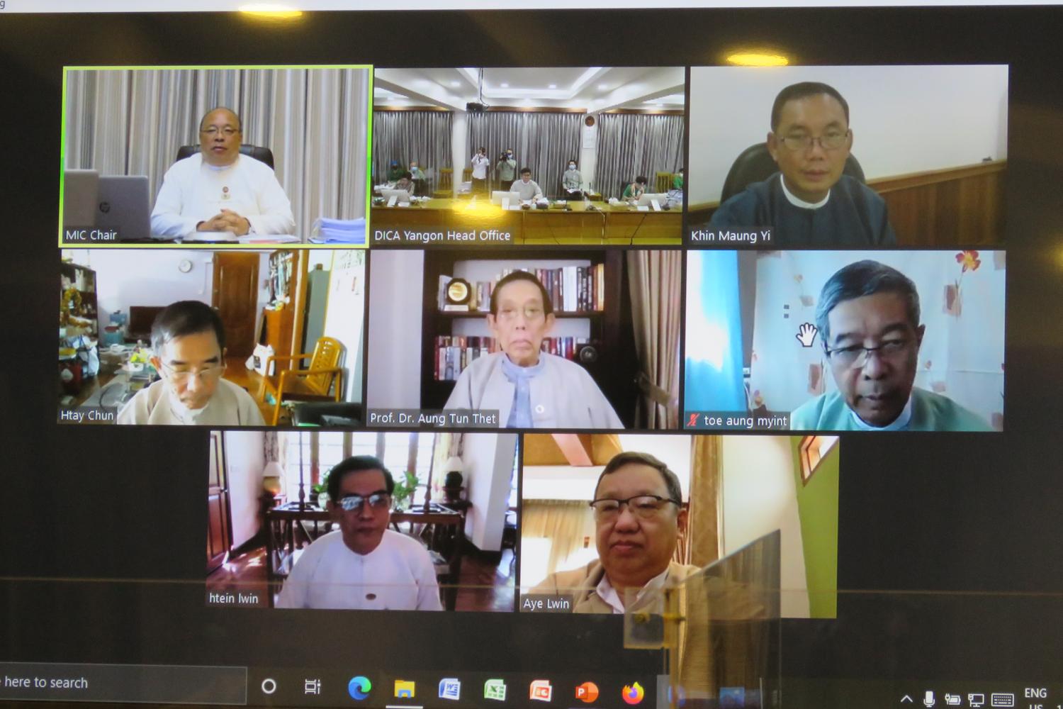 မြန်မာနိုင်ငံရင်းနှီးမြှုပ်နှံမှုကော်မရှင်၏ (၁၅/၂၀၂၀) ကြိမ်မြောက် အစည်းအဝေးကို ယနေ့ နံနက် ပိုင်းတွင် ဗီဒီယို ကွန်ဖရင့် စနစ်ဖြင့် ကျင်းပရာ မြန်မာနိုင်ငံရင်းနှီး မြှုပ်နှံမှုကော်မရှင်ဥက္ကဋ္ဌ ပြည်ထောင်စု ဝန်ကြီး ဦးသောင်းထွန်းနှင့် အဖွဲ့ဝင်များ တက်ရောက်ကြသည်။