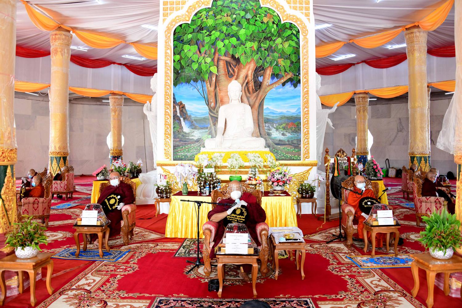 နေပြည်တော် ဒက္ခိဏသီရိမြို့နယ် ရာဇသင်္ဂဟလမ်း ကံ့ကော်ပန်းအဝိုင်းအနီးတွင် တည်ဆောက် ပူဇော်ထားသော ထာဝရငြိမ်းချမ်းရေးစေတီတော် ပထမအကြိမ် ဗုဒ္ဓပူဇနိယပွဲတော်နှင့် ဗုဒ္ဓါဘိသေက အနေကဇာတင် မဟာမင်္ဂလာအခမ်းအနားကို ယနေ့နံနက် ၉ နာရီတွင် ထာဝရငြိမ်းချမ်းရေးစေတီတော် ဂန္ဓကုဋိတိုက်အတွင်း၌ COVID-19 ကာကွယ် တားဆီးရေး ဆိုင်ရာ ညွှန်ကြားချက်များနှင့်အညီ ကျင်းပသည်။